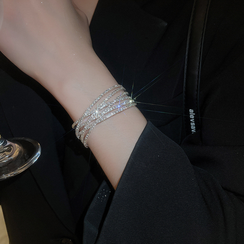 50# bracelet-silver-10 layers cross