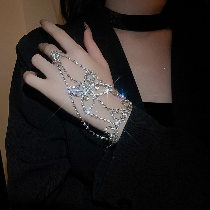 49# bracelet-silver-flower rhinestone-embedded 3 rings