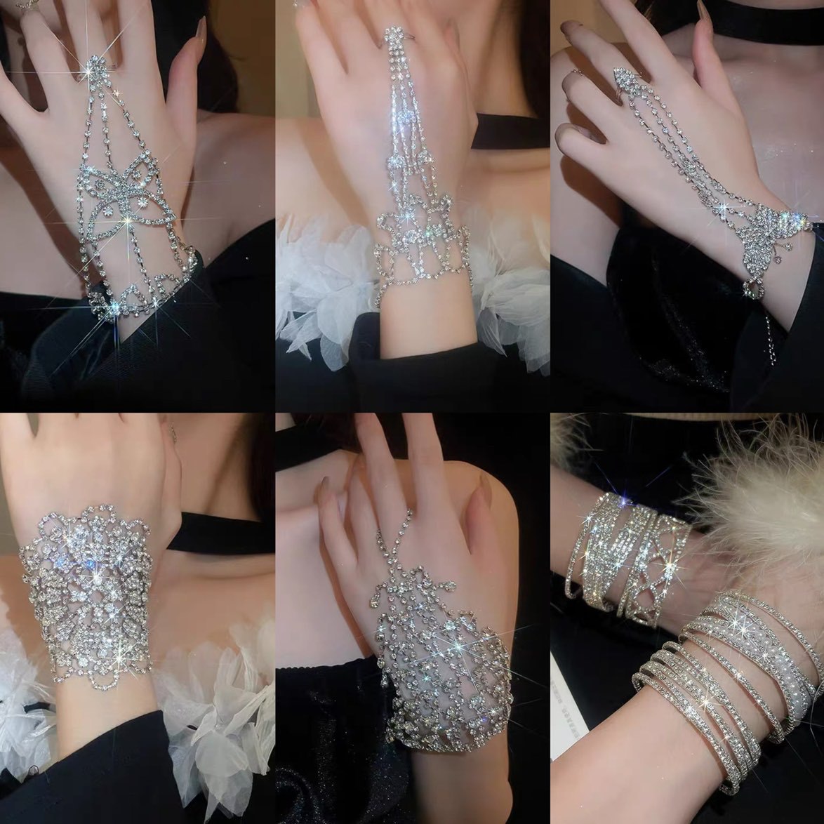 45# bracelet-silver-size diamond 5 rings
