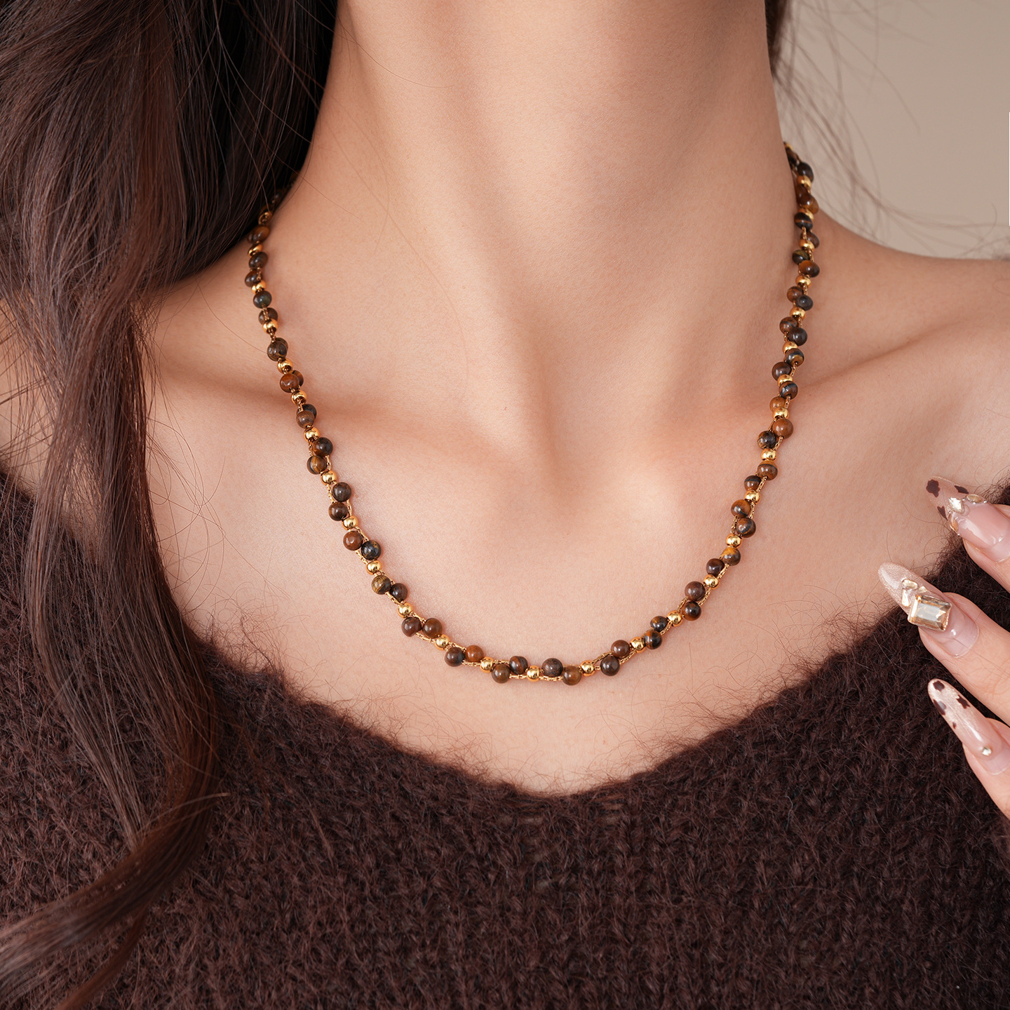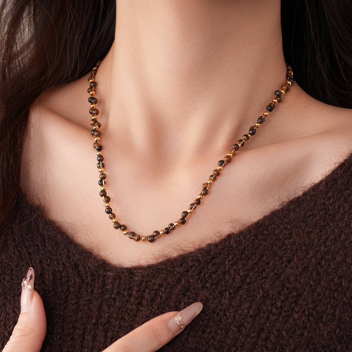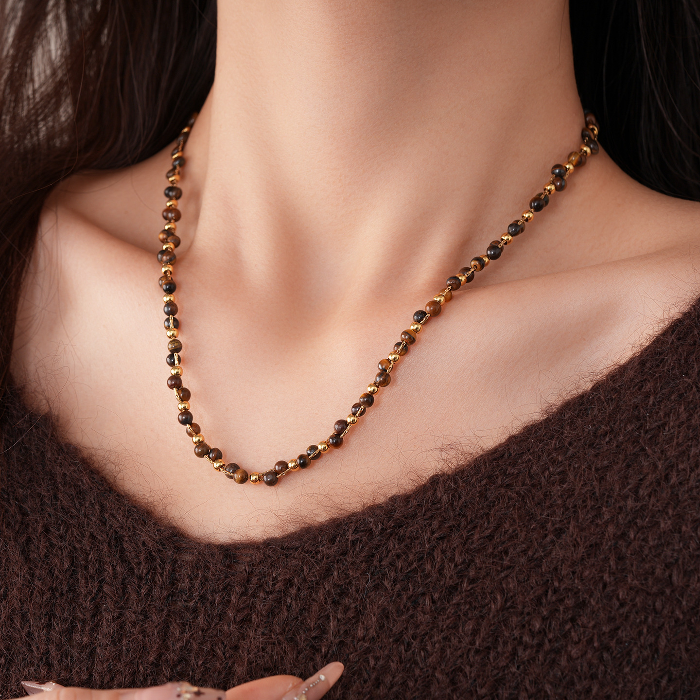 necklace-golden-coffee color (real gold plating)