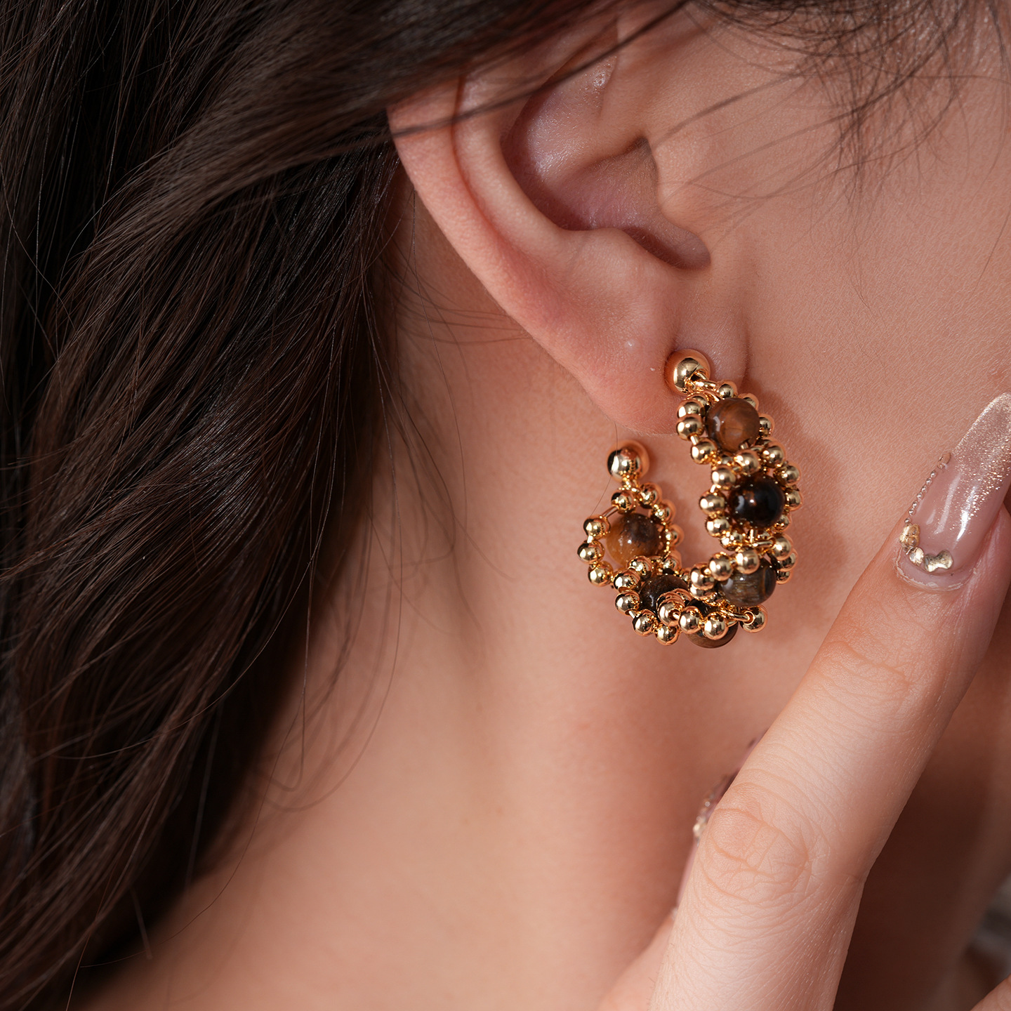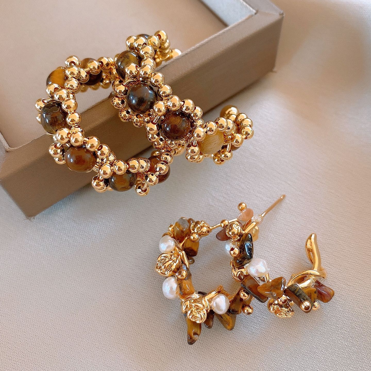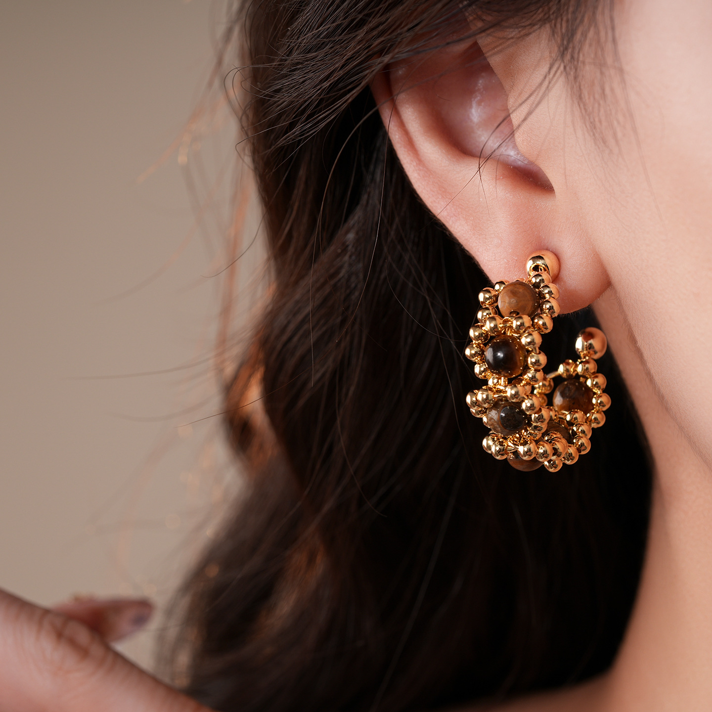 31# earrings-golden-coffee color (real gold plating)