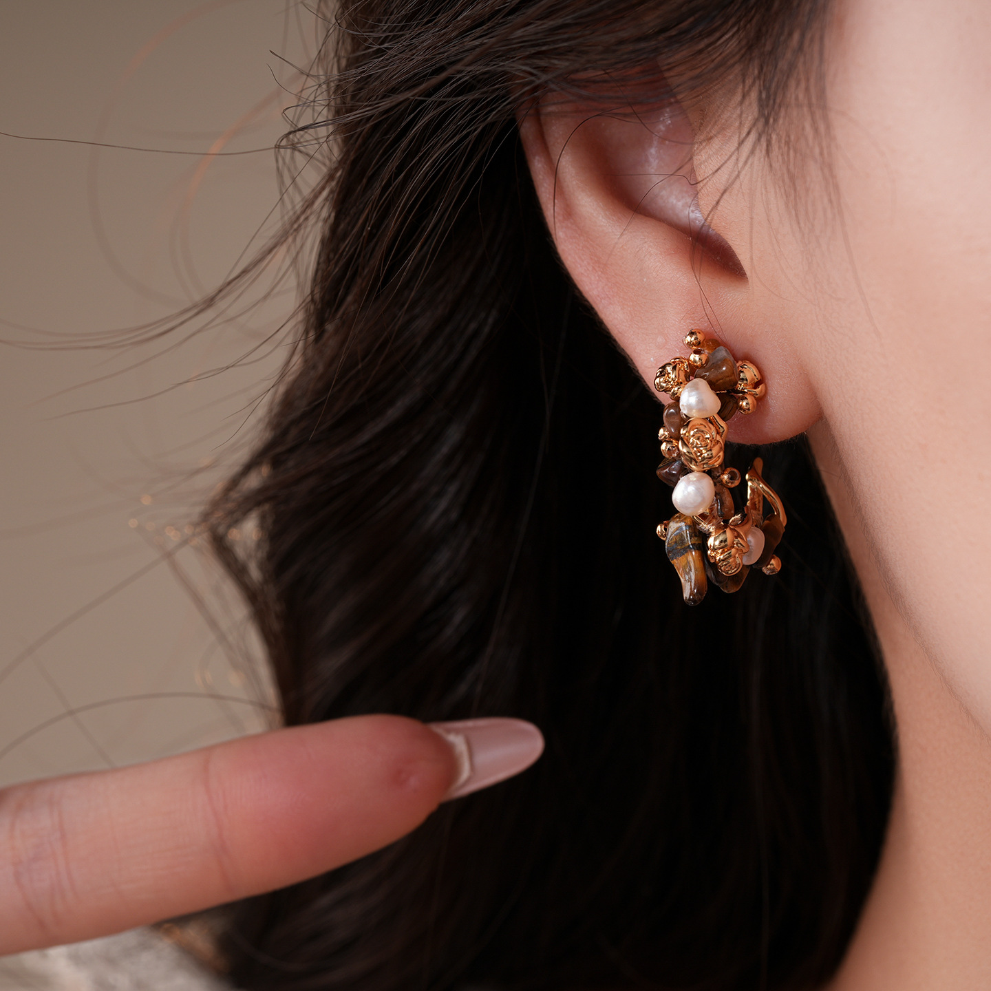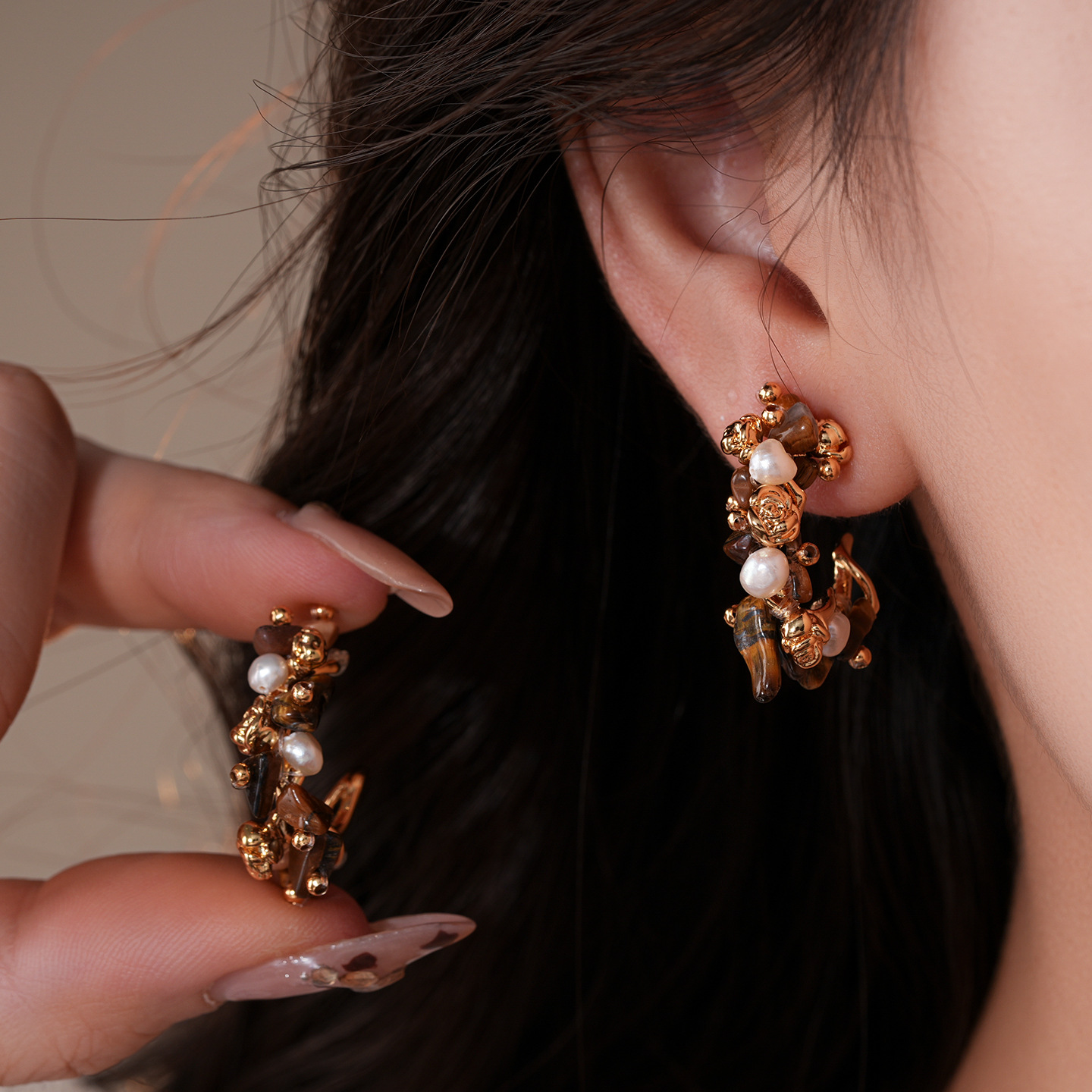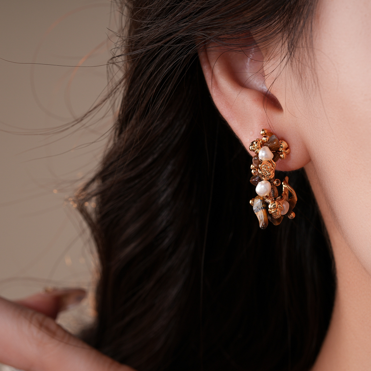 31# earrings-golden-coffee color (real gold plating)