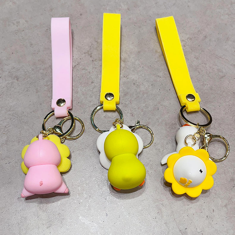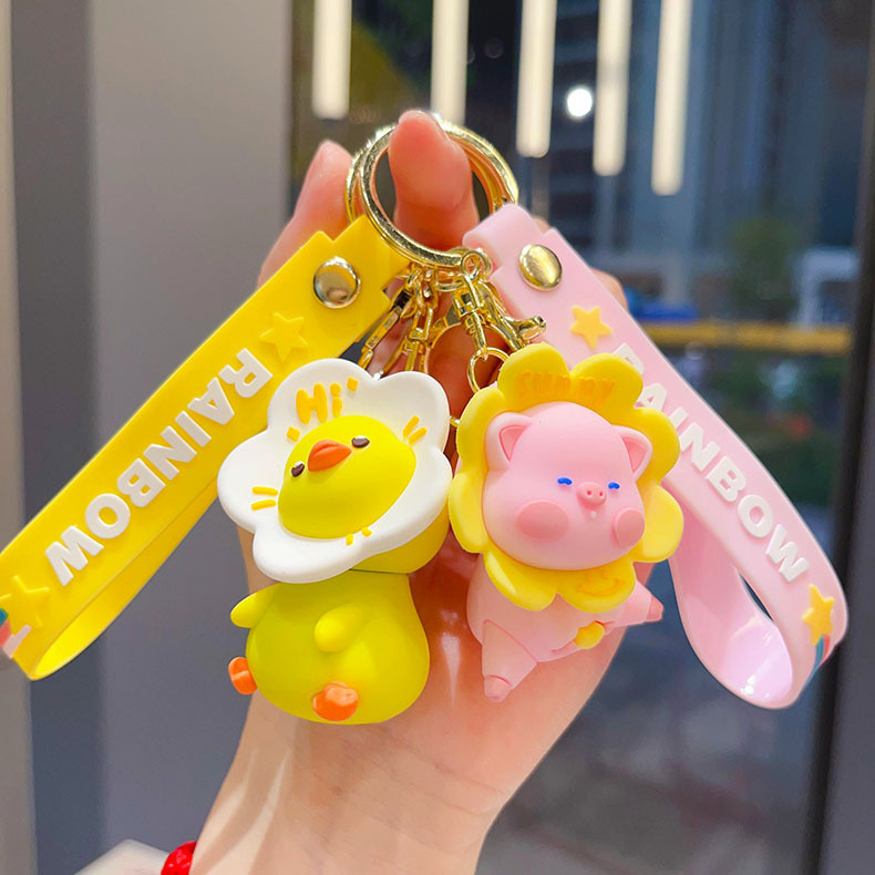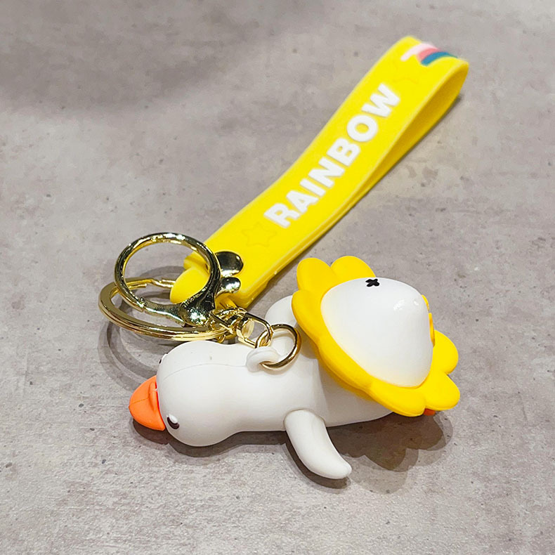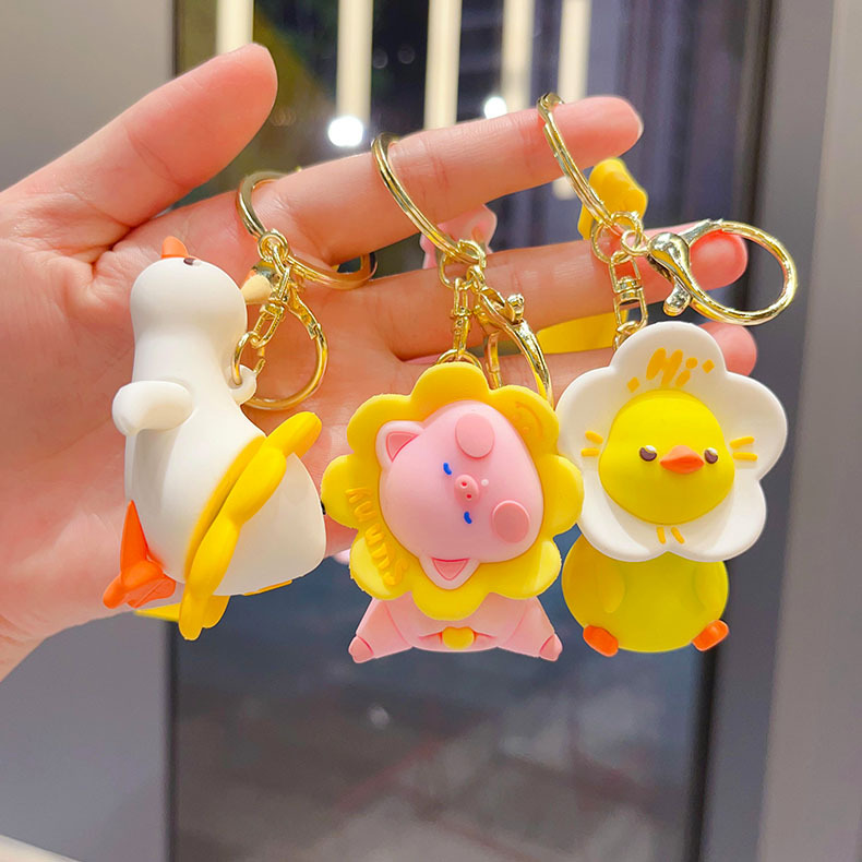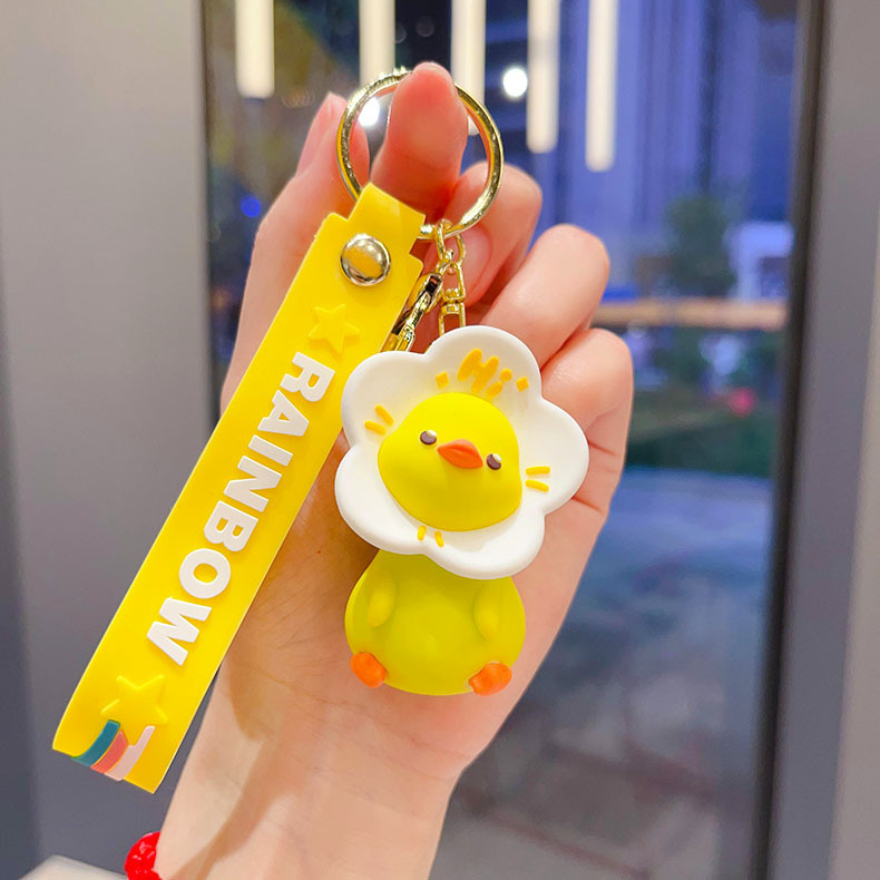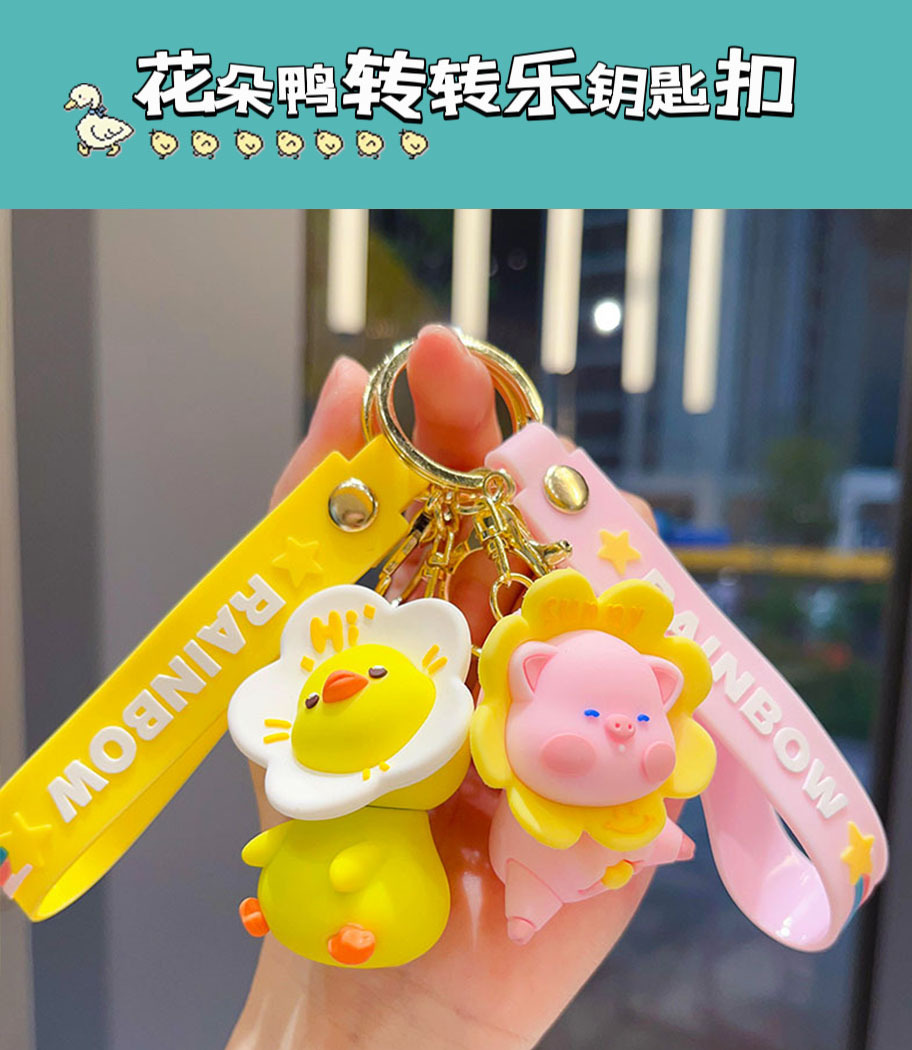 cartoon flower duck rotary table keychain cute little duck key chain car shape school bag hanging ornament small gift wholesale