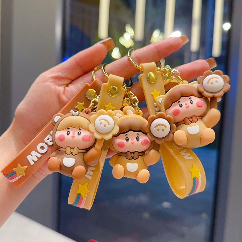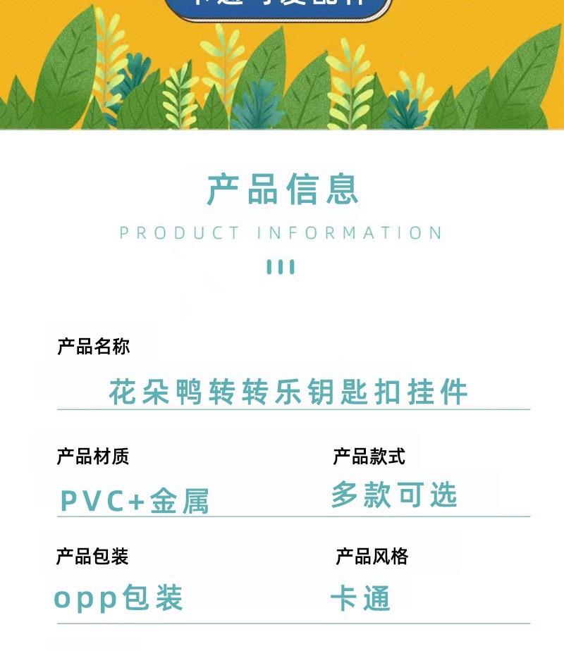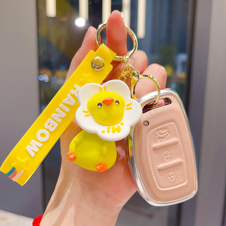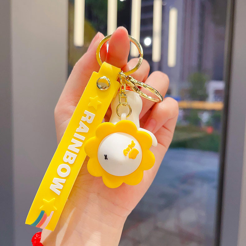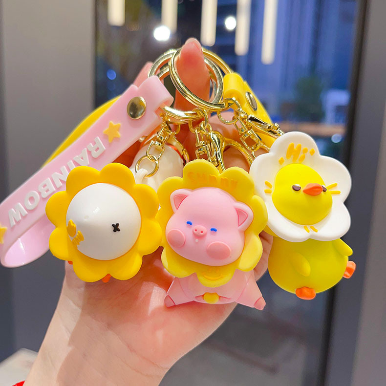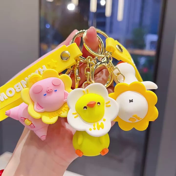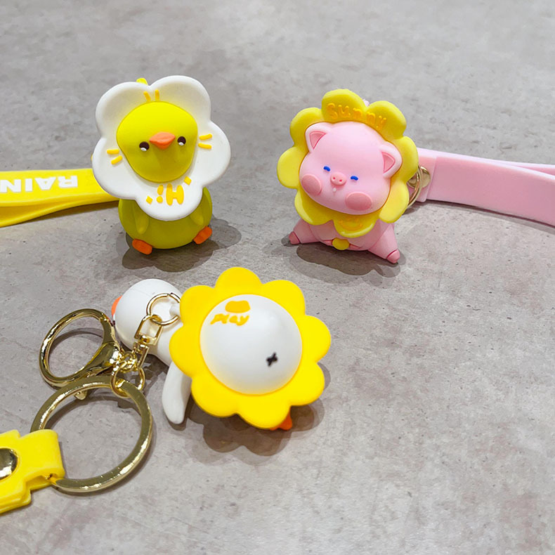 cartoon flower duck rotary table keychain cute little duck key chain car shape school bag hanging ornament small gift wholesale