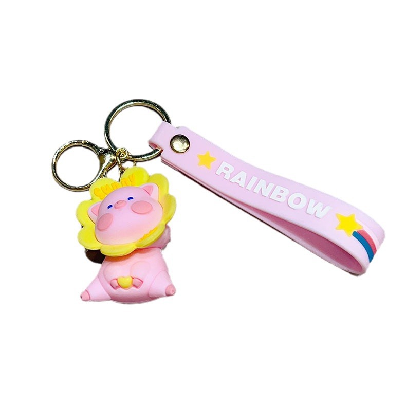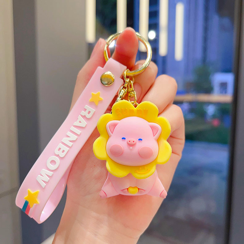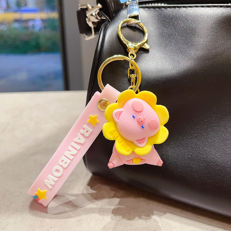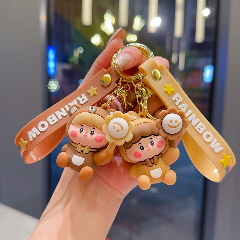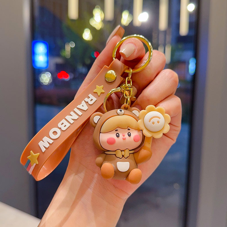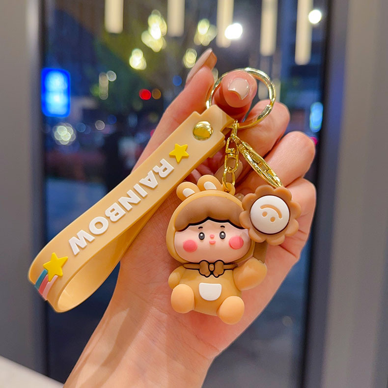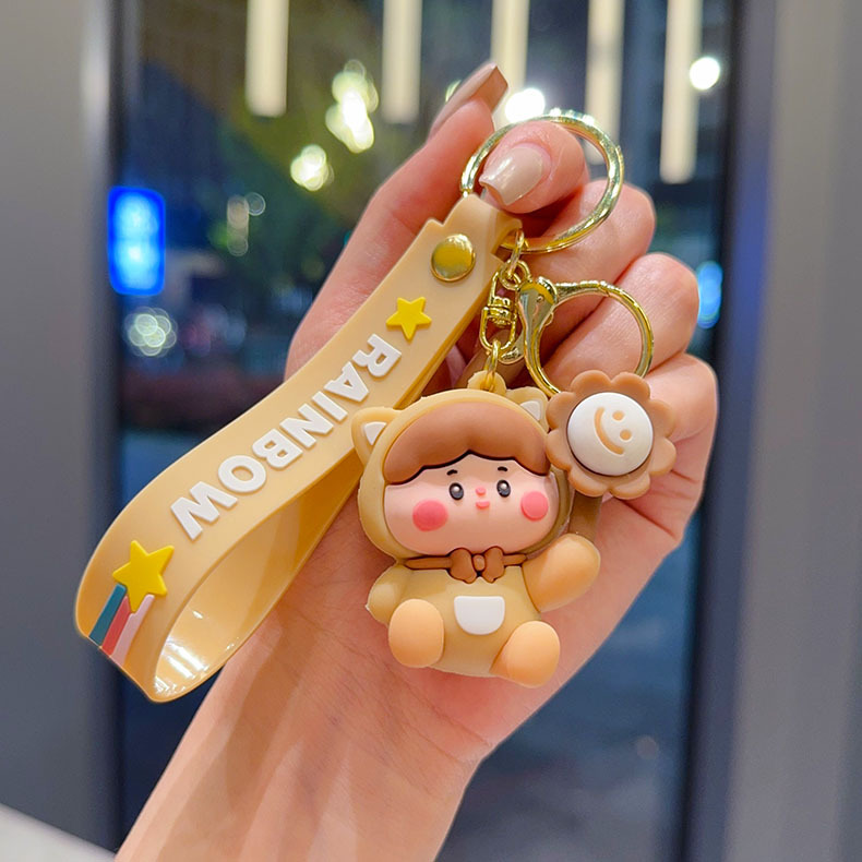 cartoon flower duck rotary table keychain cute little duck key chain car shape school bag hanging ornament small gift wholesale