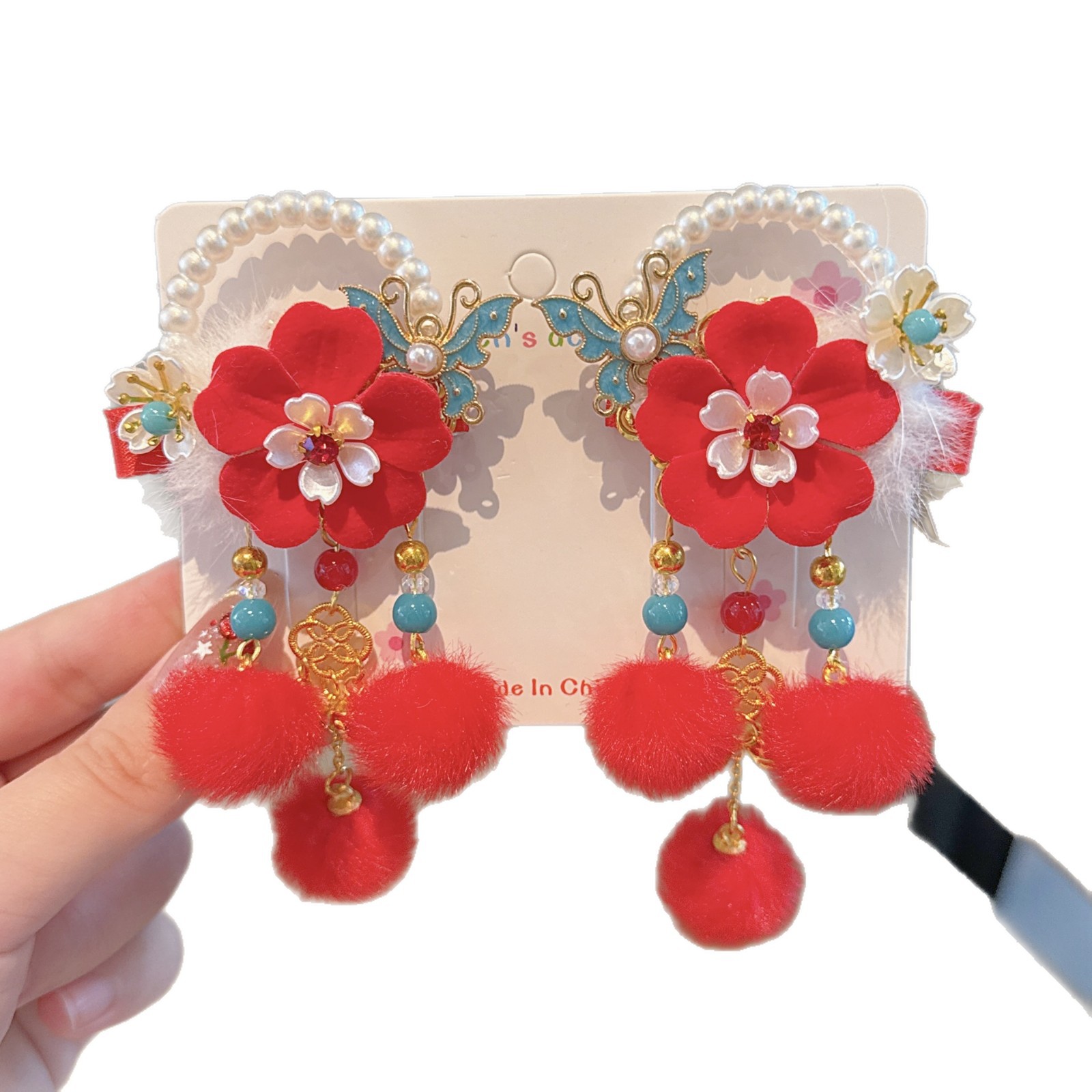 pearl ring red flower