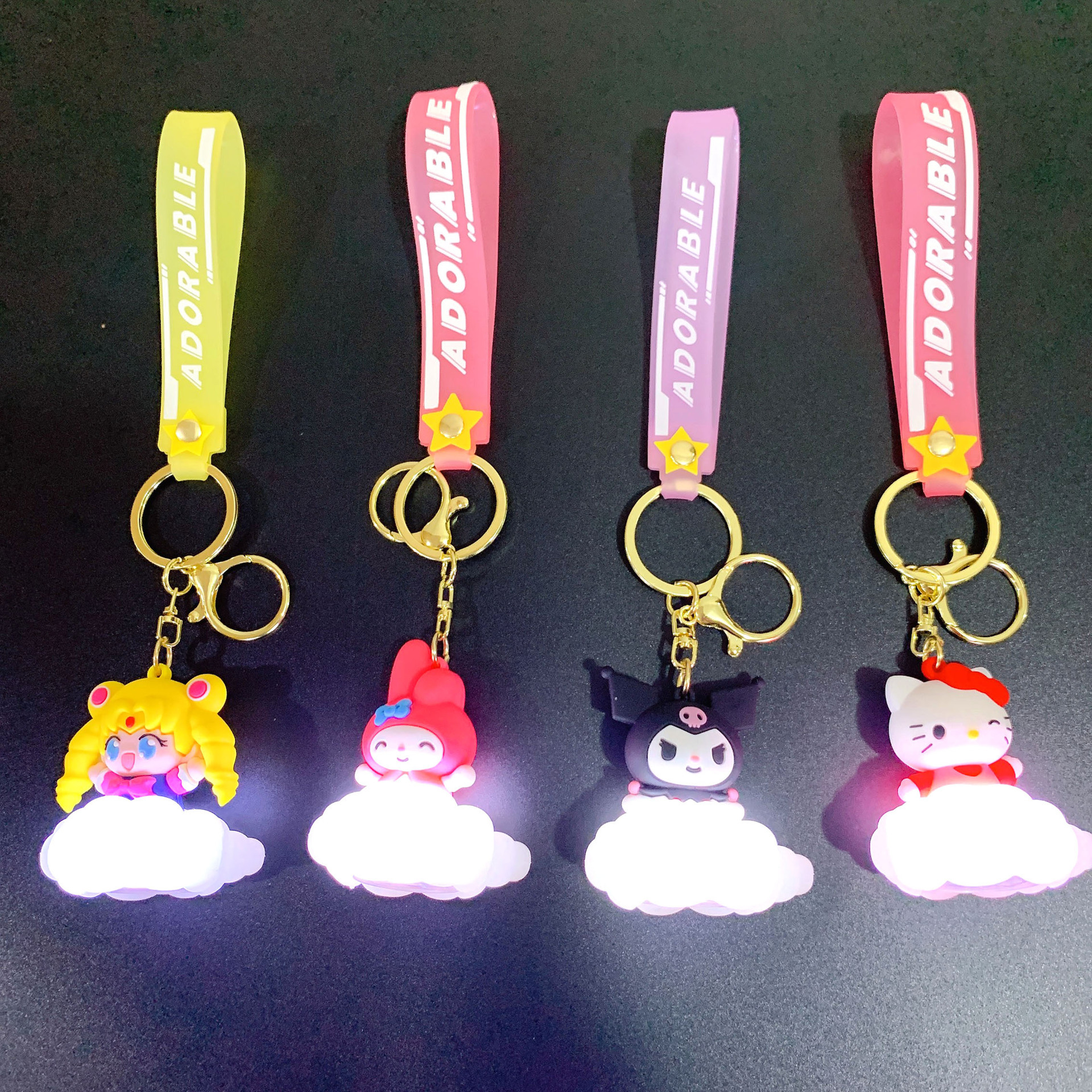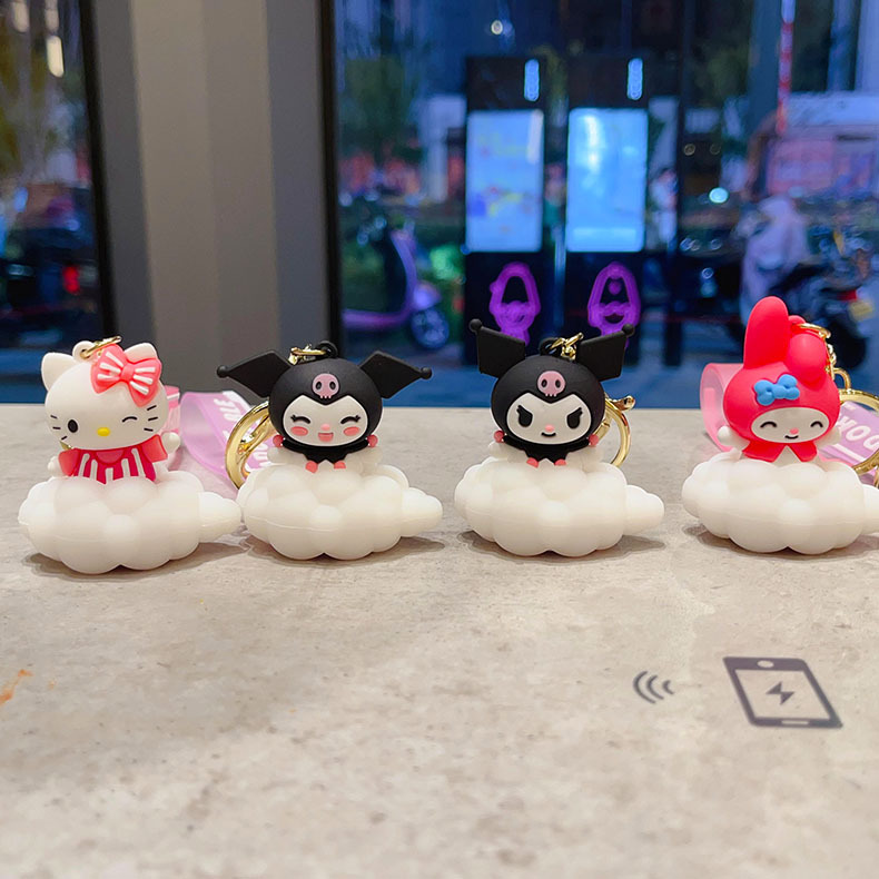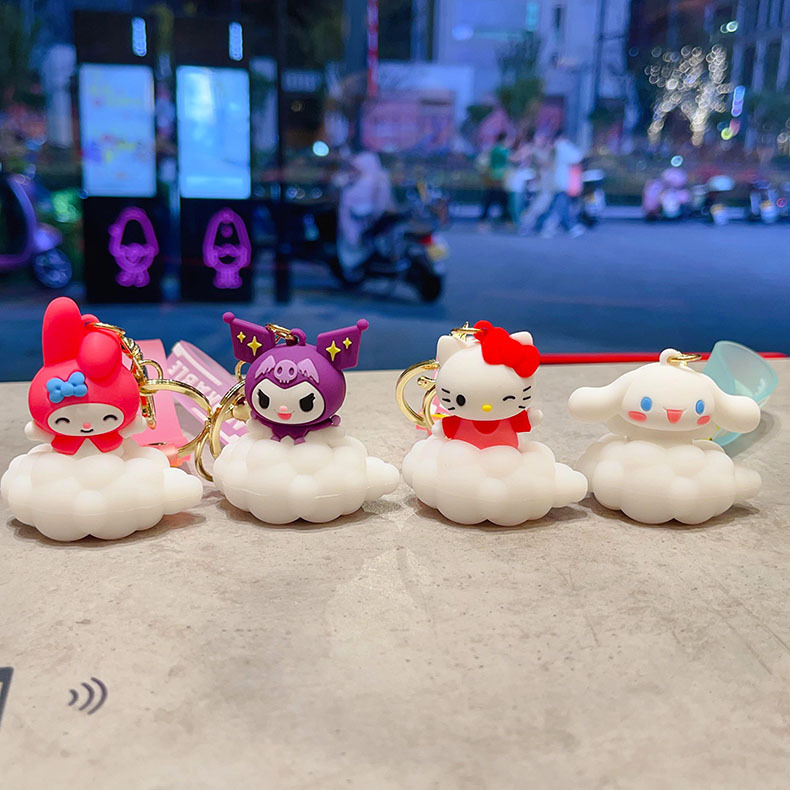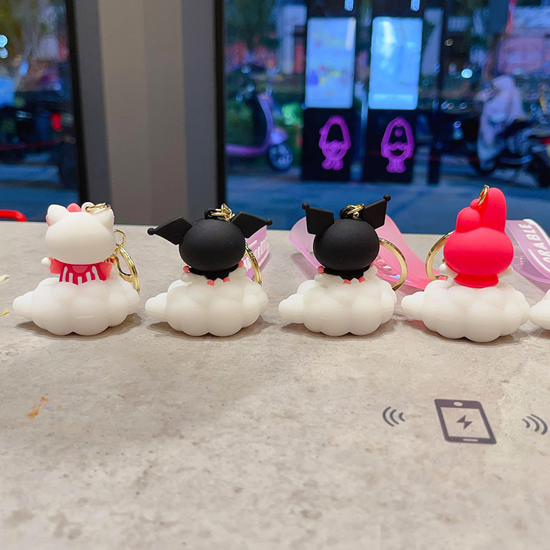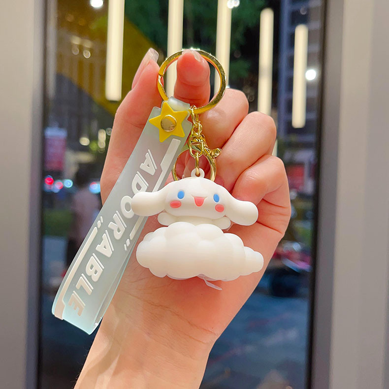 cartoon sanrio cloud light keychain pendant ambience light car key chain couple schoolbag ornament gifts