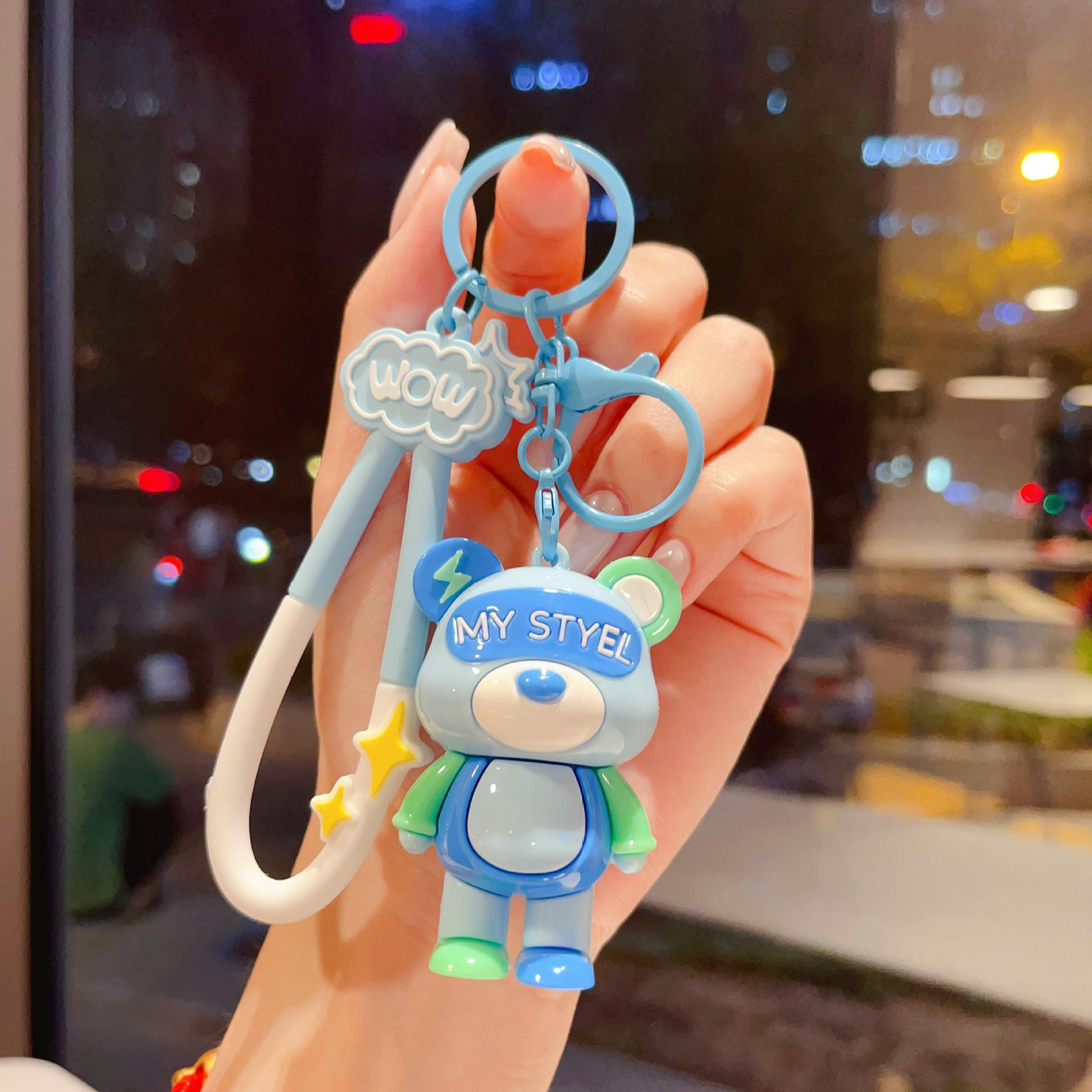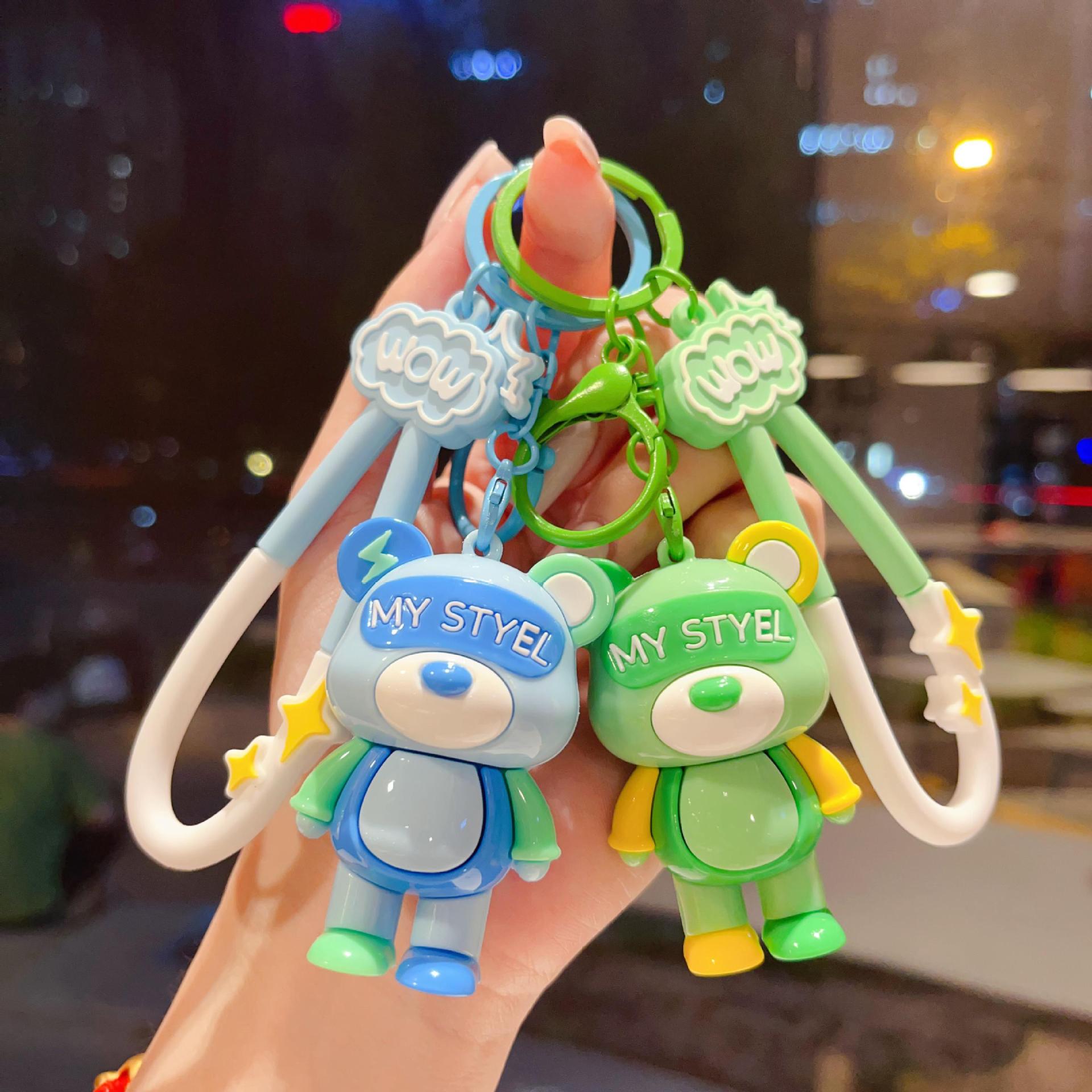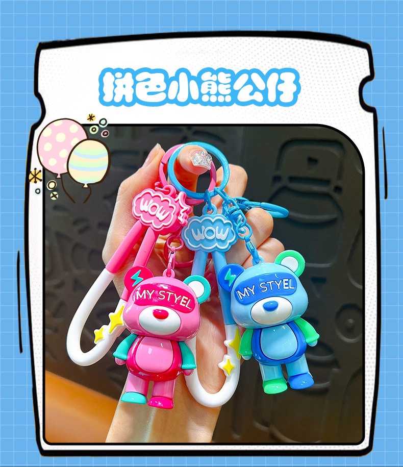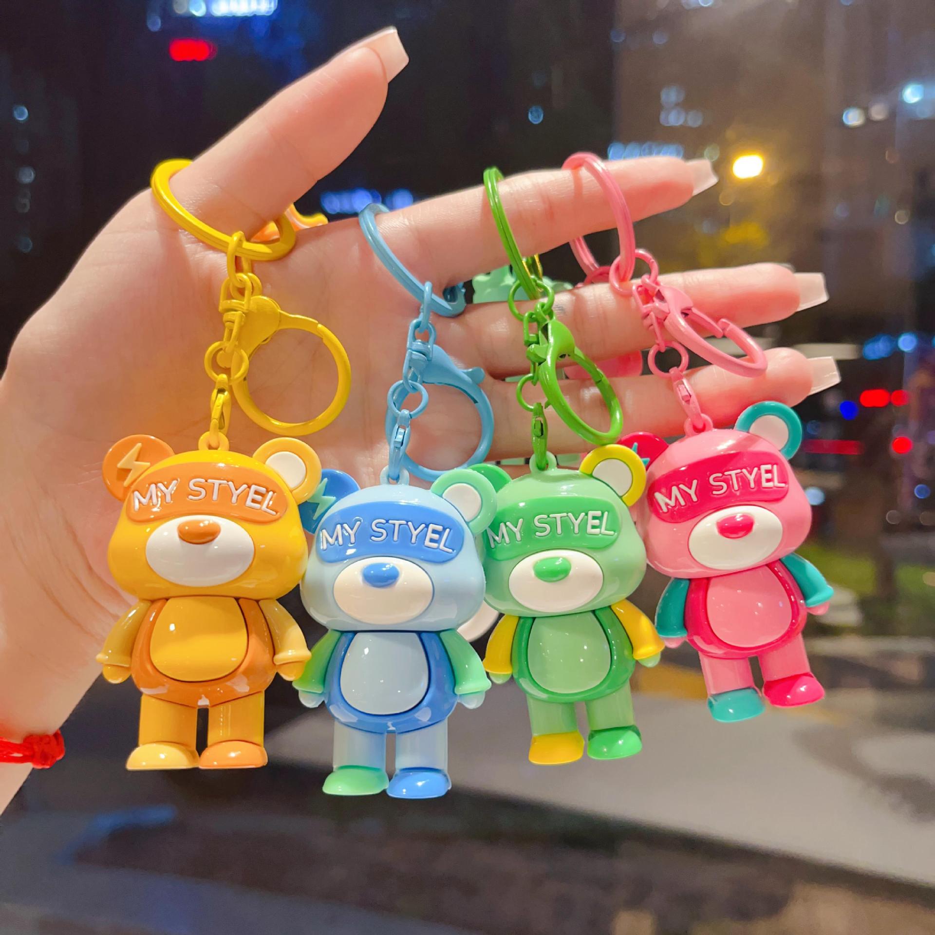 cartoon color matching lightning bear keychain soft rubber doll car key chain ornaments couple creative small gifts wholesale