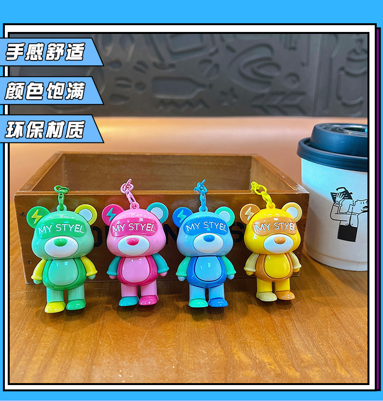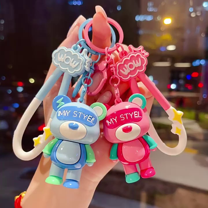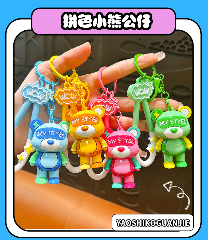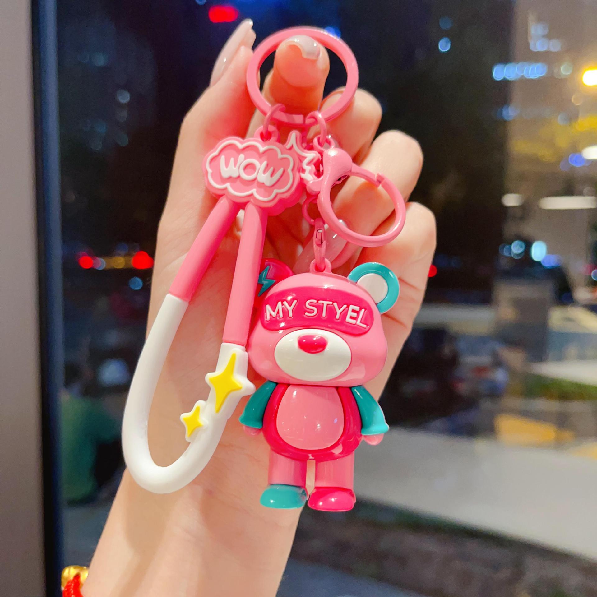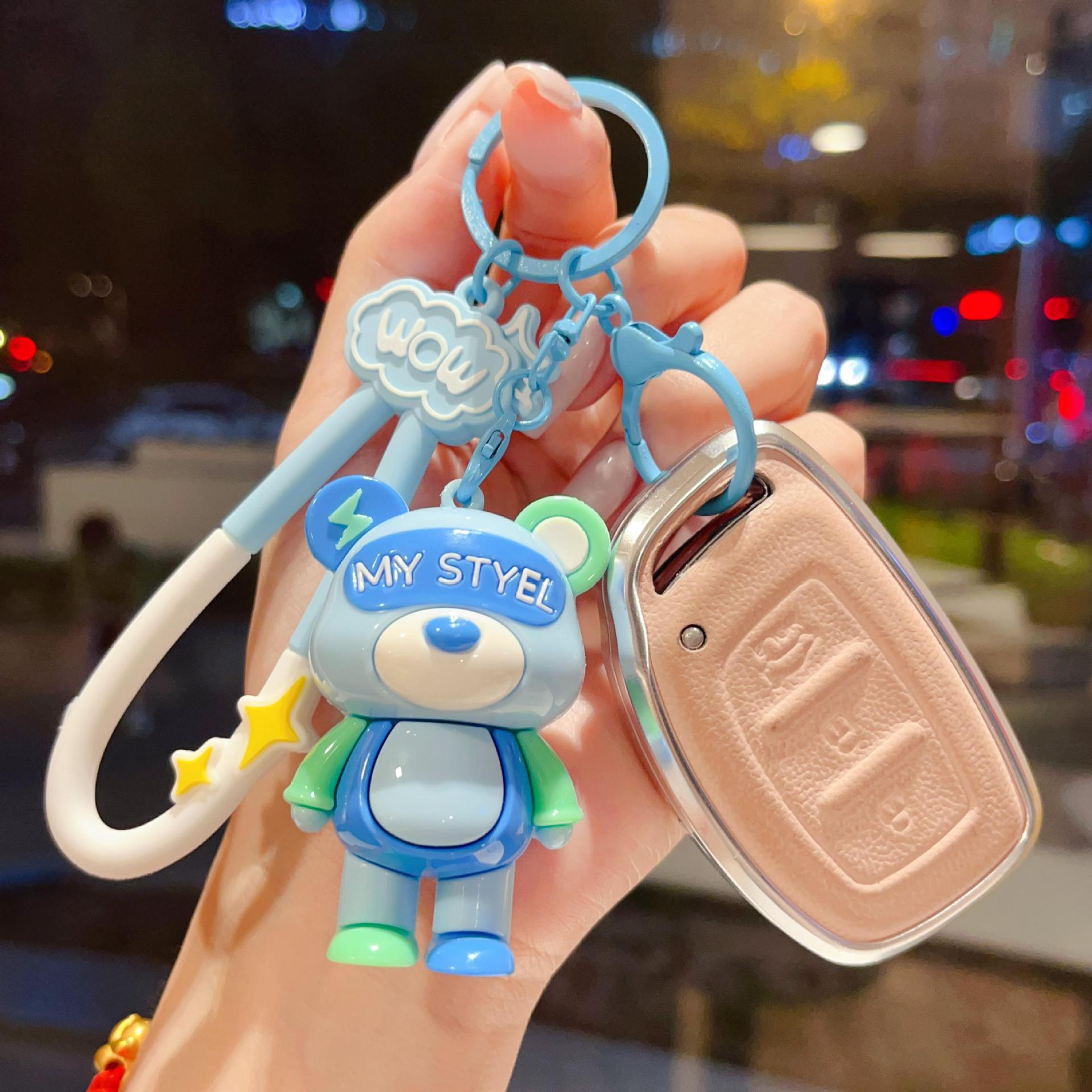 cartoon color matching lightning bear keychain soft rubber doll car key chain ornaments couple creative small gifts wholesale