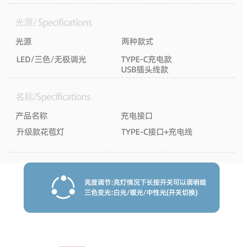 iron bud lamp: dual-purpose charging and plug-in (white)