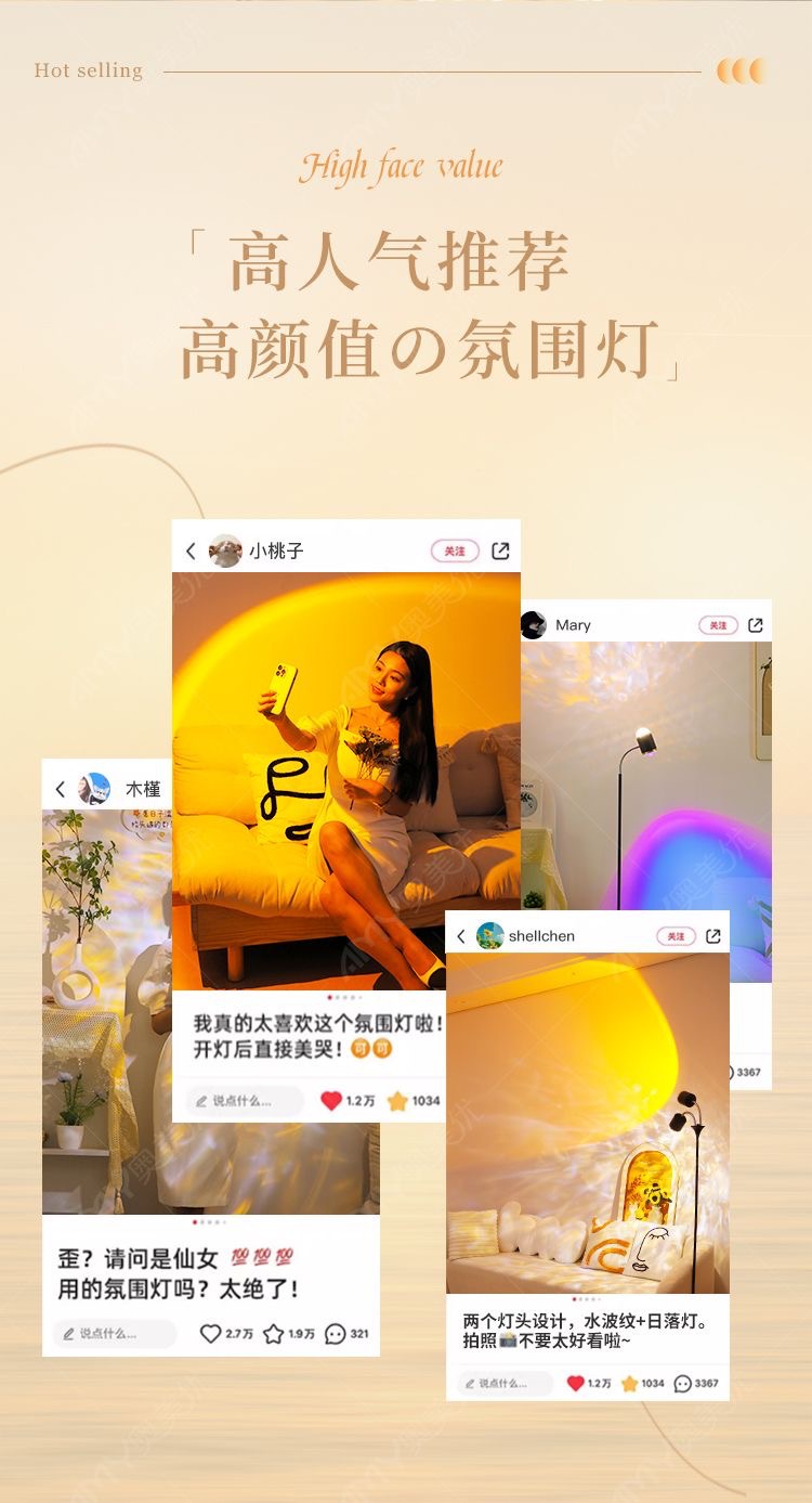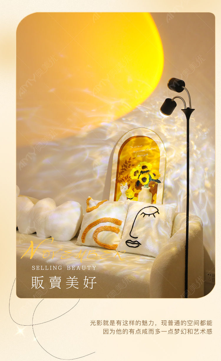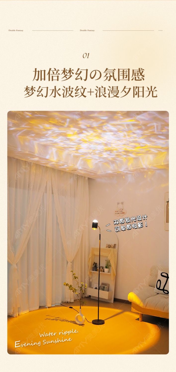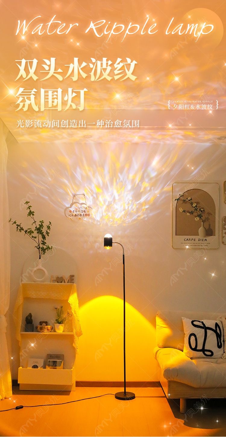 dynamic water ripple + sunset red double-headed (white) 220v remote control type