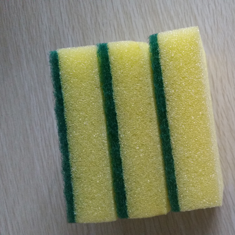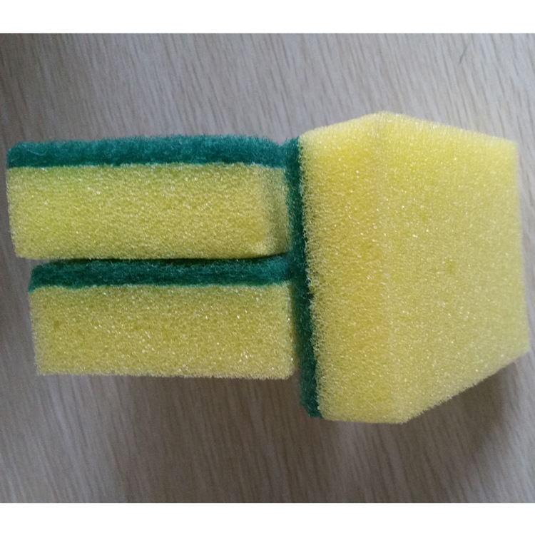 It is a product made of cleaning cloth (polyester fiber) bonded to sponge. One side of the cleaning cloth is rough, suitable for cleaning difficult to clean dirt, and the other side of the sponge is soft, which does not damage or wear the surface of kitchen utensils. By combining them, it is easy to clean the bowls and chopsticks.