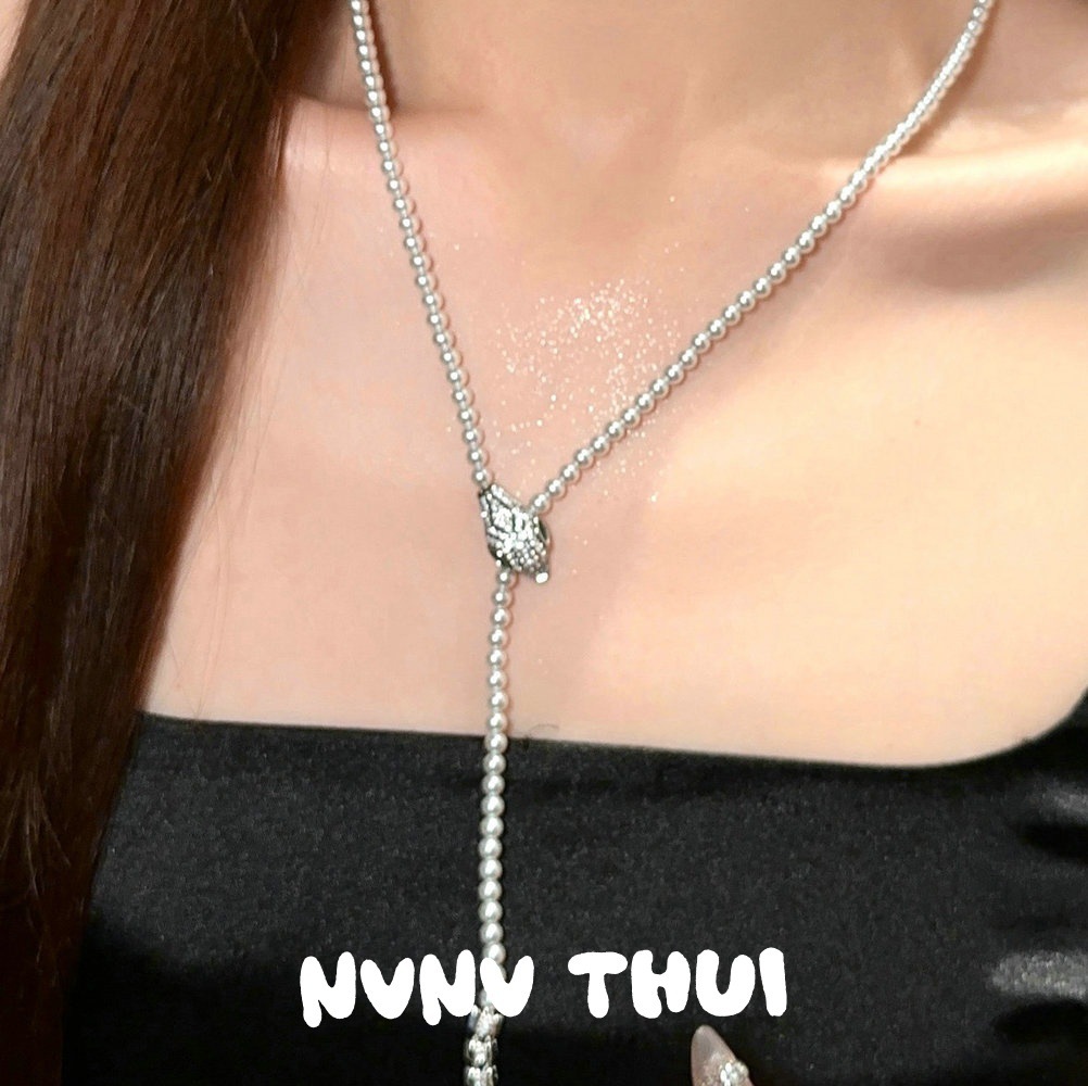 749nv small rice-shaped beads spirit snake winding 6mm artificial shell pearls necklace ~ no box
