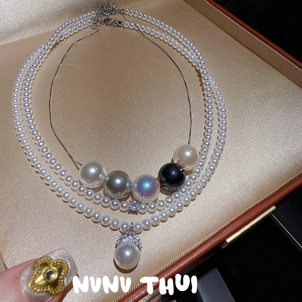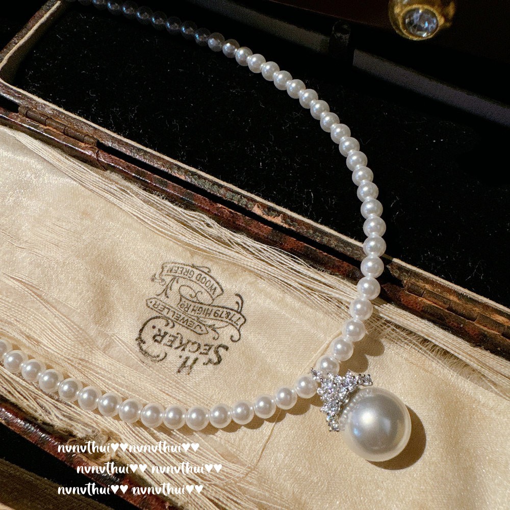2078 instant mia about 3mmbaby beads small rice-shaped beads crown zircon artificial shell pearls necklace ~ no box