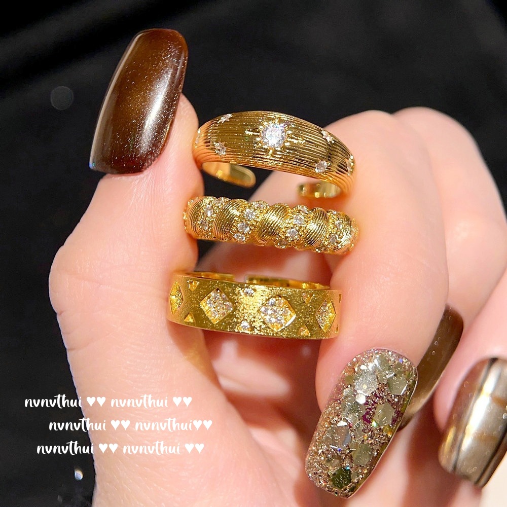 2084qip-dk1j584 gold-plated brushed vajra zircon open ring ~ no box