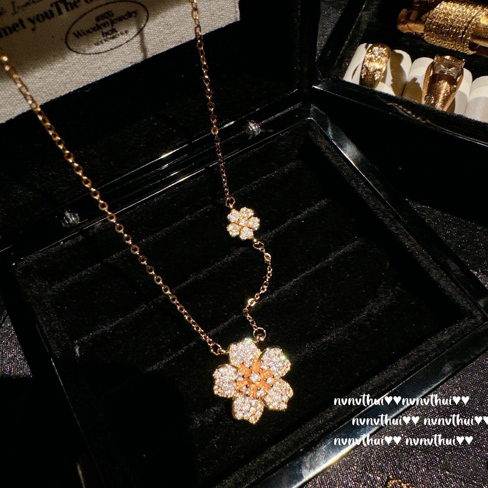 047zz gold-plated flower-like brocade zircon necklace ~ no box