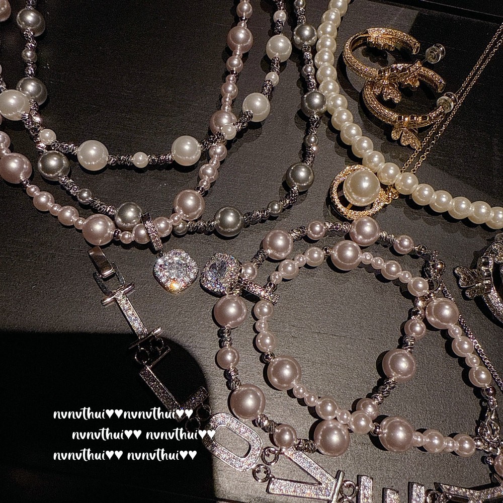 475nv cubic zirconia bubble artificial manta rose shell pearls necklace ~ no box
