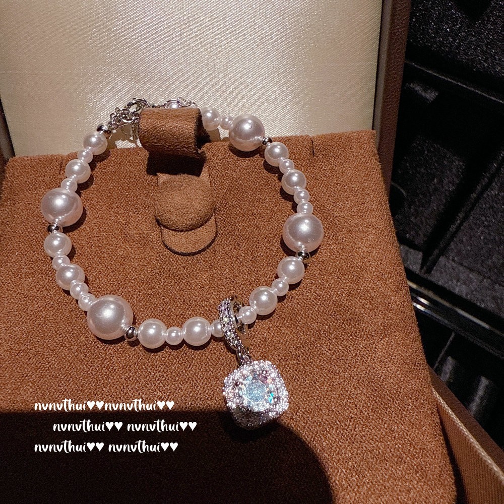 475nv cube sugar zircon bubble artificial manta rose shell pearls bracelet ~ no box