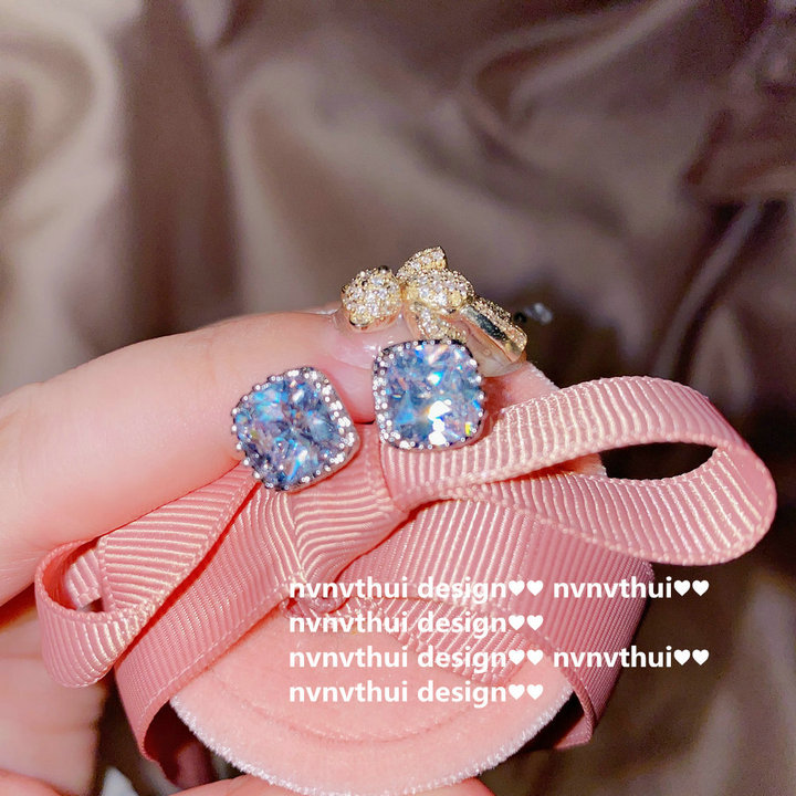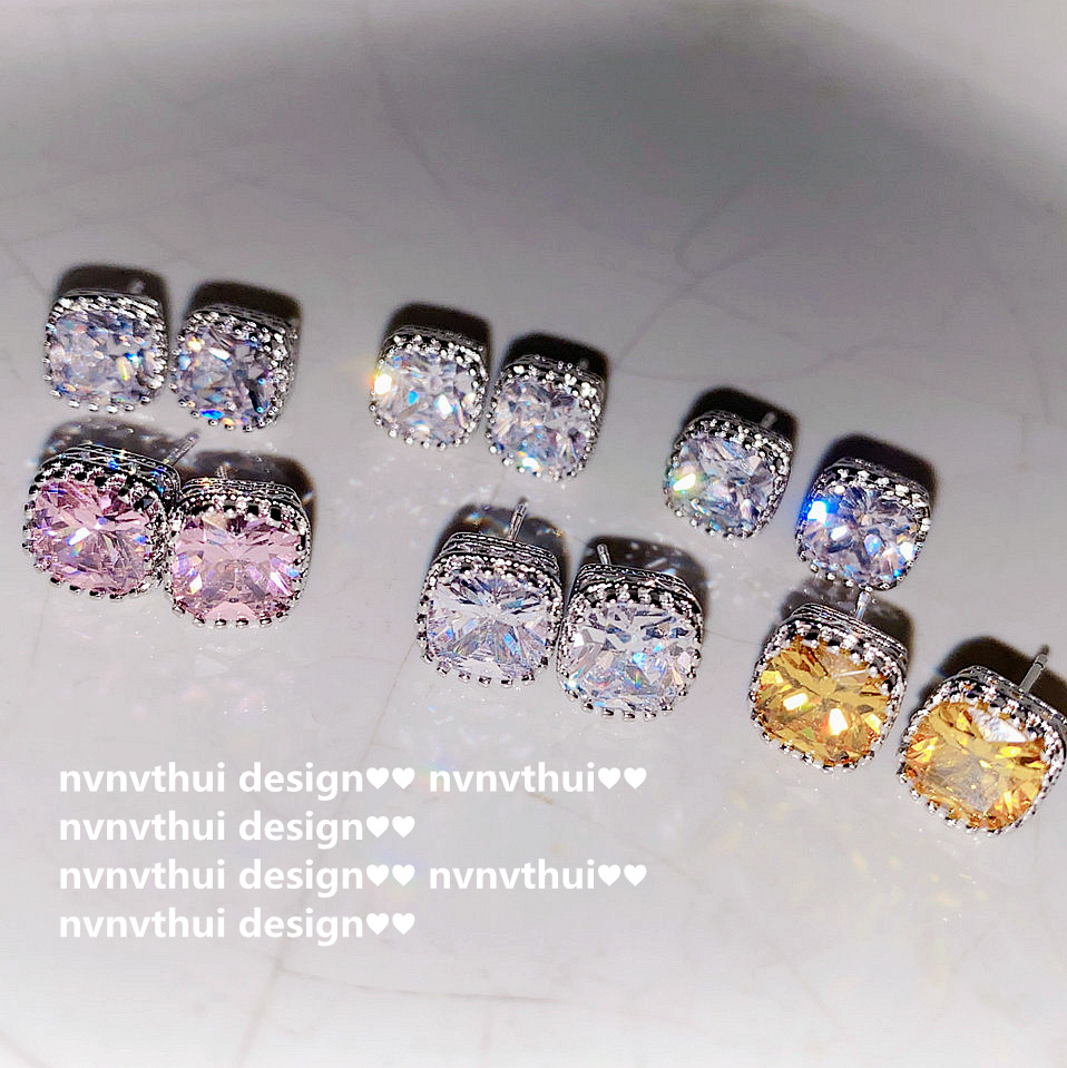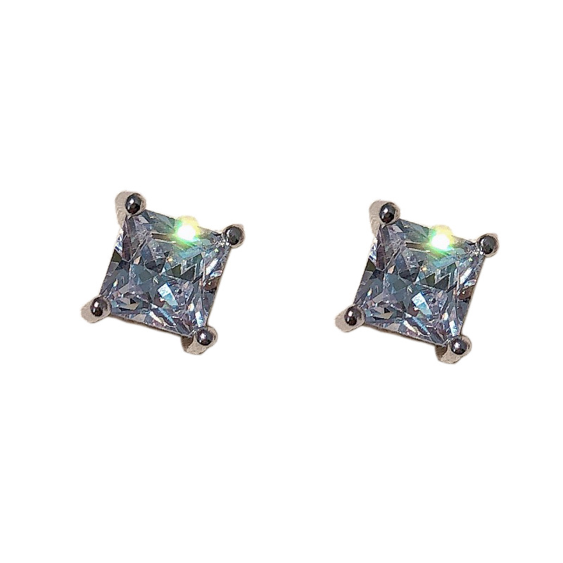 a pair of square zircon 6mm ear studs