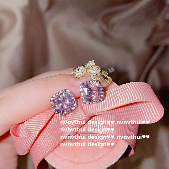 2 karat pink square zircon ear studs