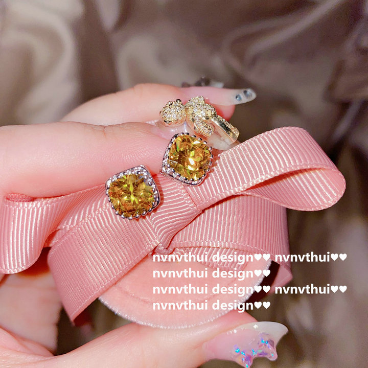 a pair of 2 karat yellow square zircon ear studs