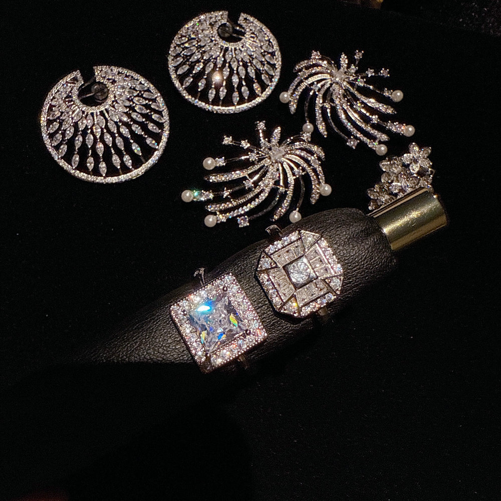 443z water drop ring garland zircon earrings ~ no box