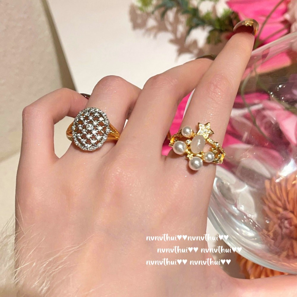 2021zz gold-plated lace egg-shaped starry zircon open ring ~ no box