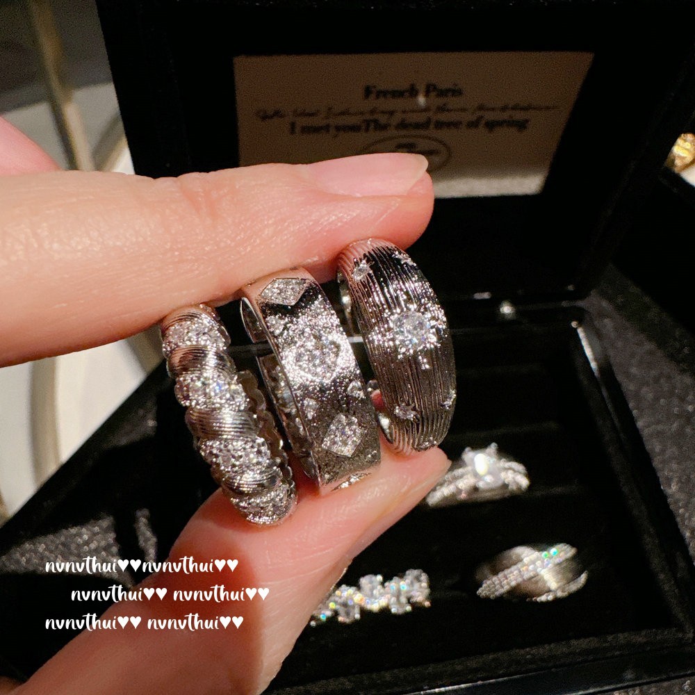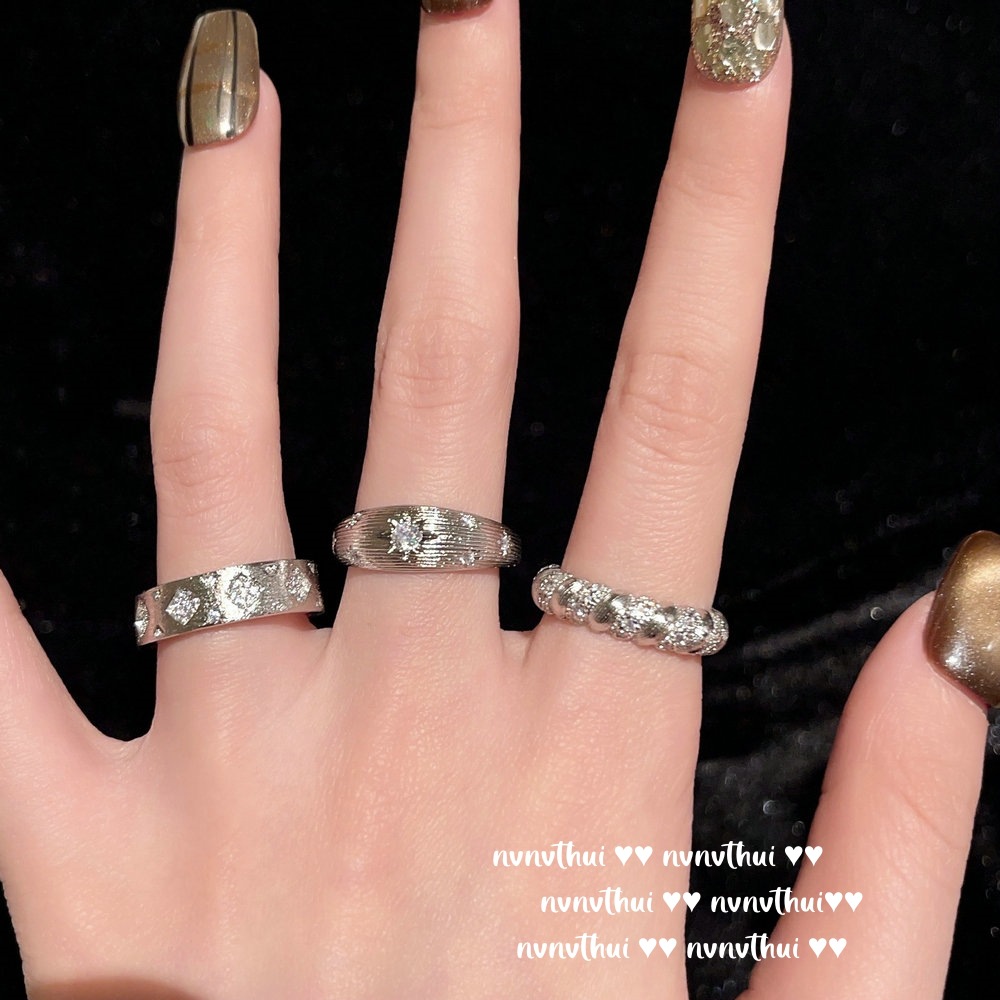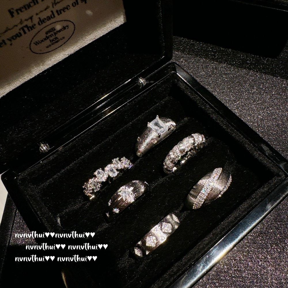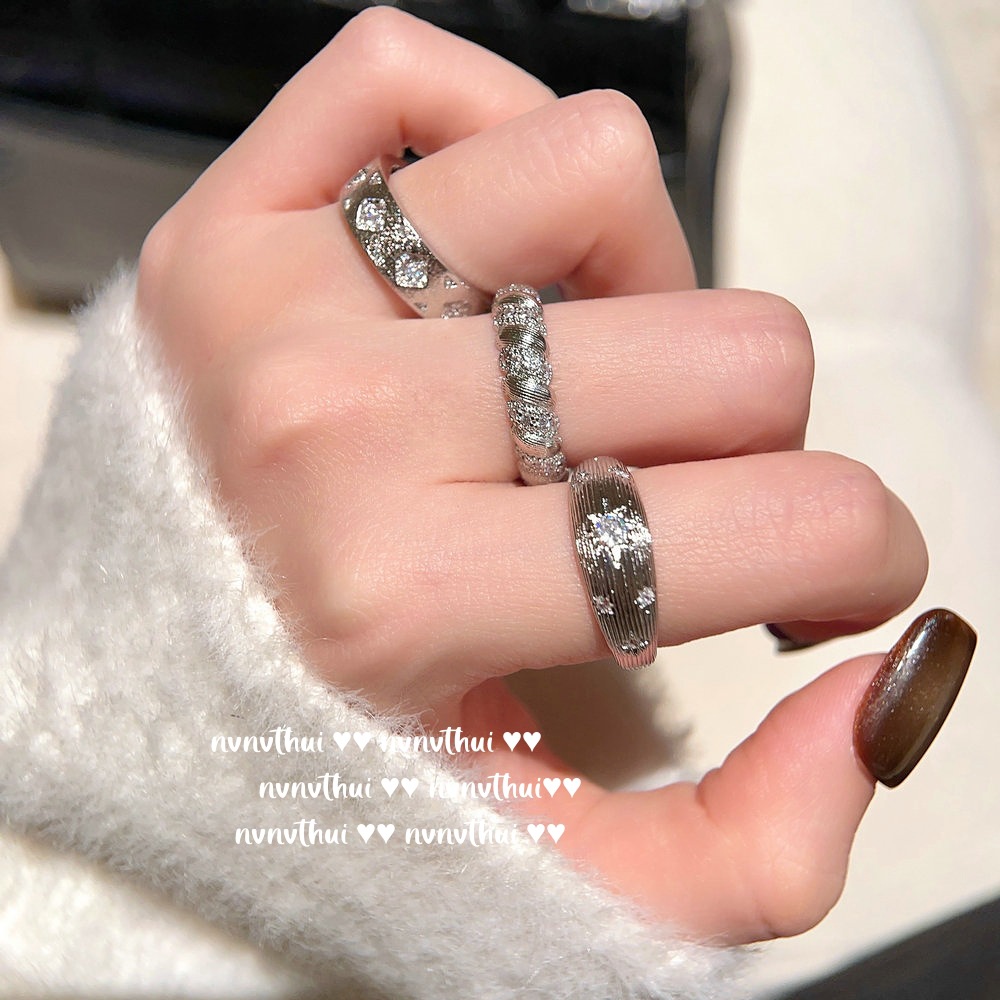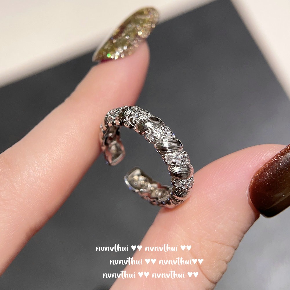 037zz white gold plated [new] retro diamond zircon open ring ~ no box