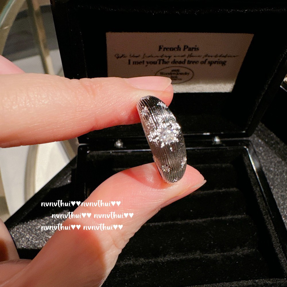 037zz white gold plated [new] brushed pumpkin asterism zircon open ring ~ no box