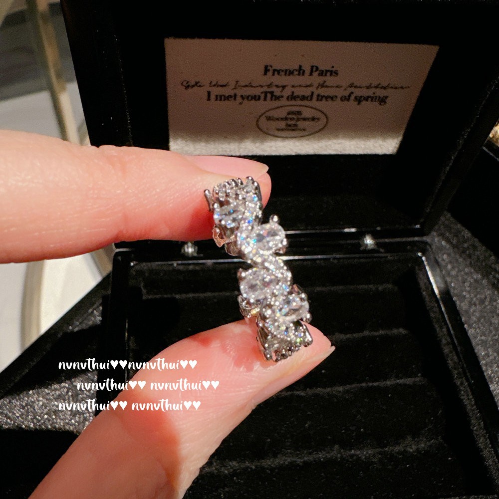 037hh white gold plated [new] vine zircon open ring ~ no box