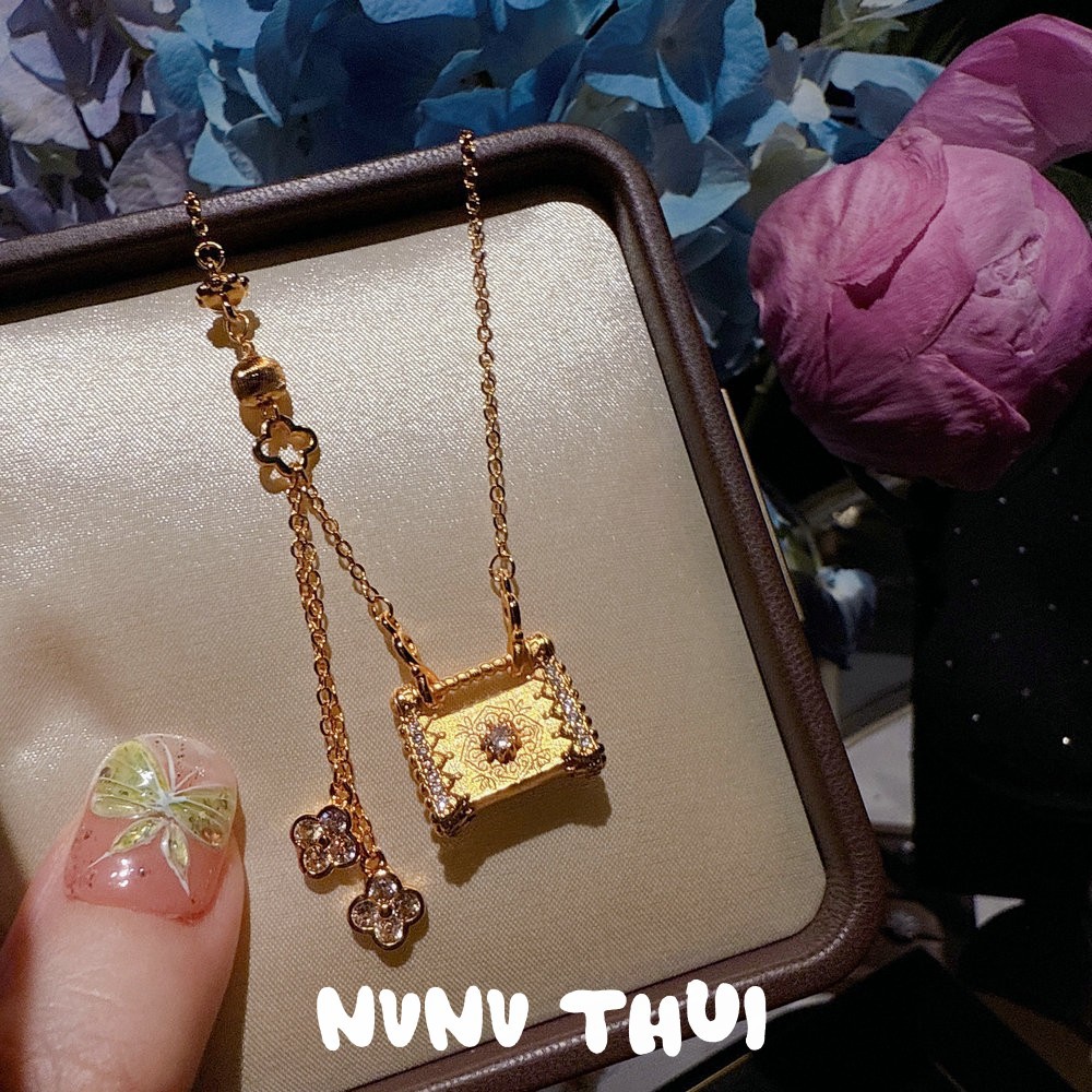 3065qip brushed small flower lock bag necklace ~ no box