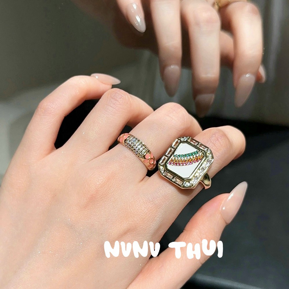 190qip [rainbow] drip glazed rectangular rhinestone open ring ~ no box