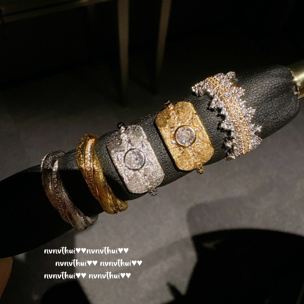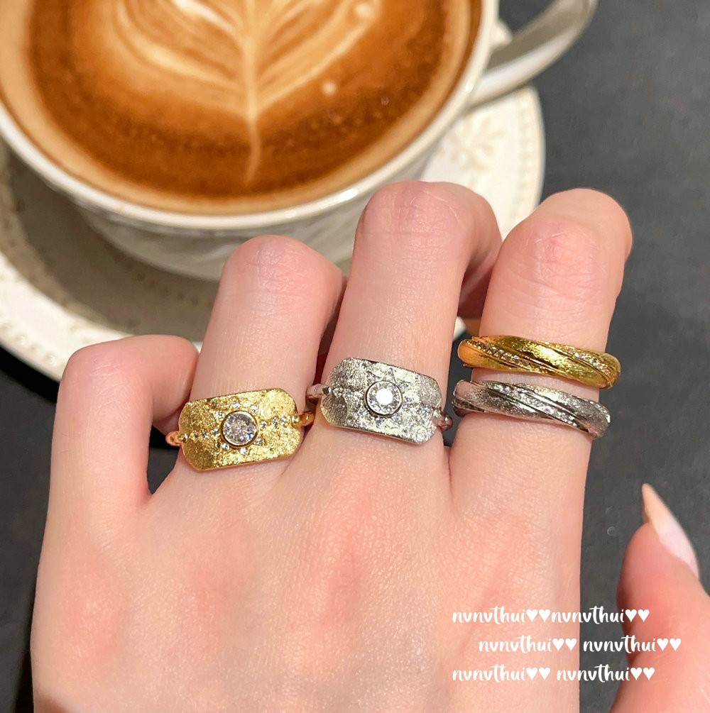 947z gold-plated vintage brushed wavy zircon open ring ~ no box