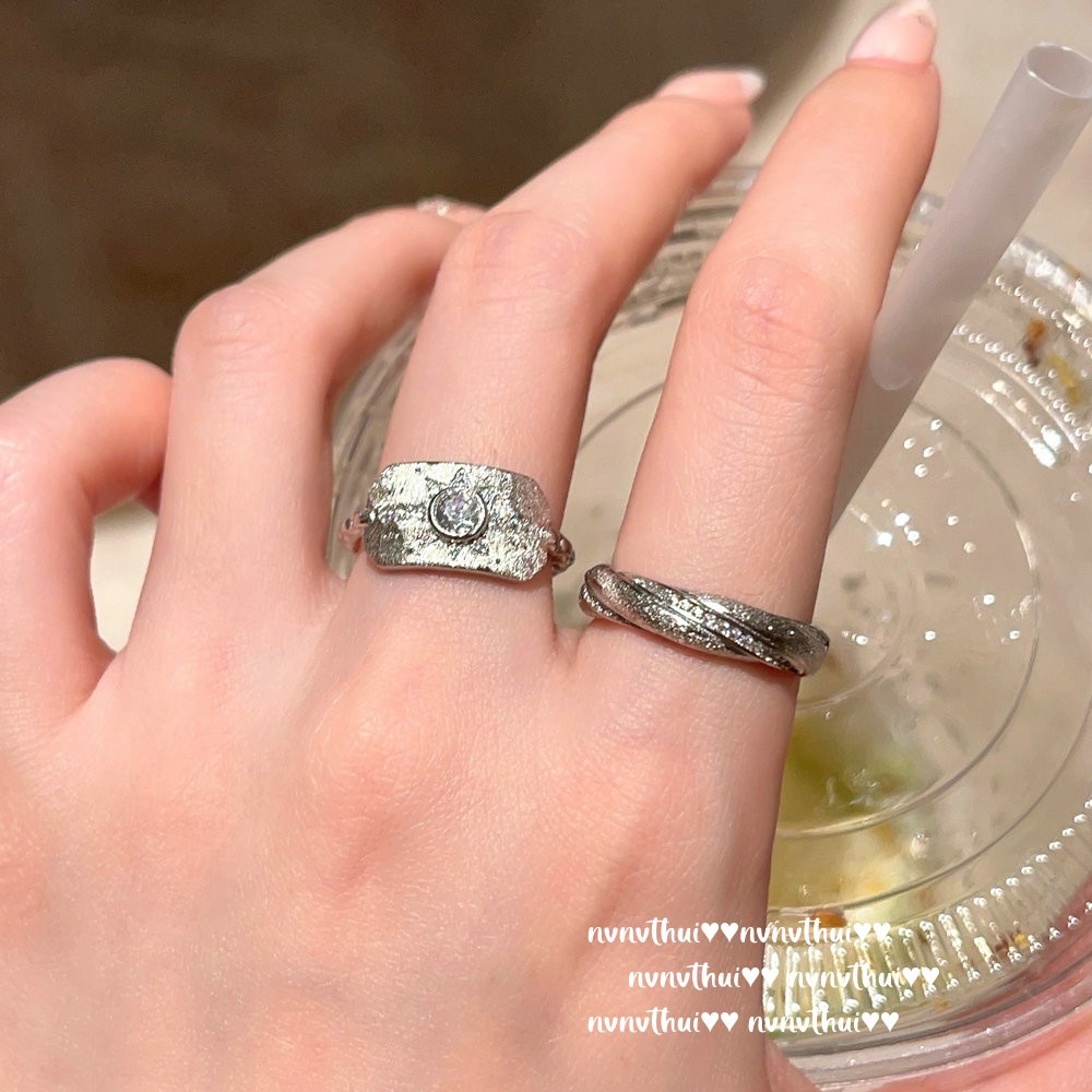 947z white gold plated vintage brushed wavy zircon open ring ~ no box