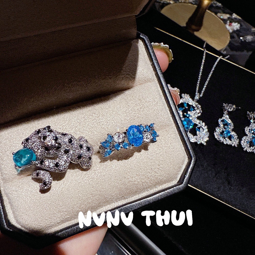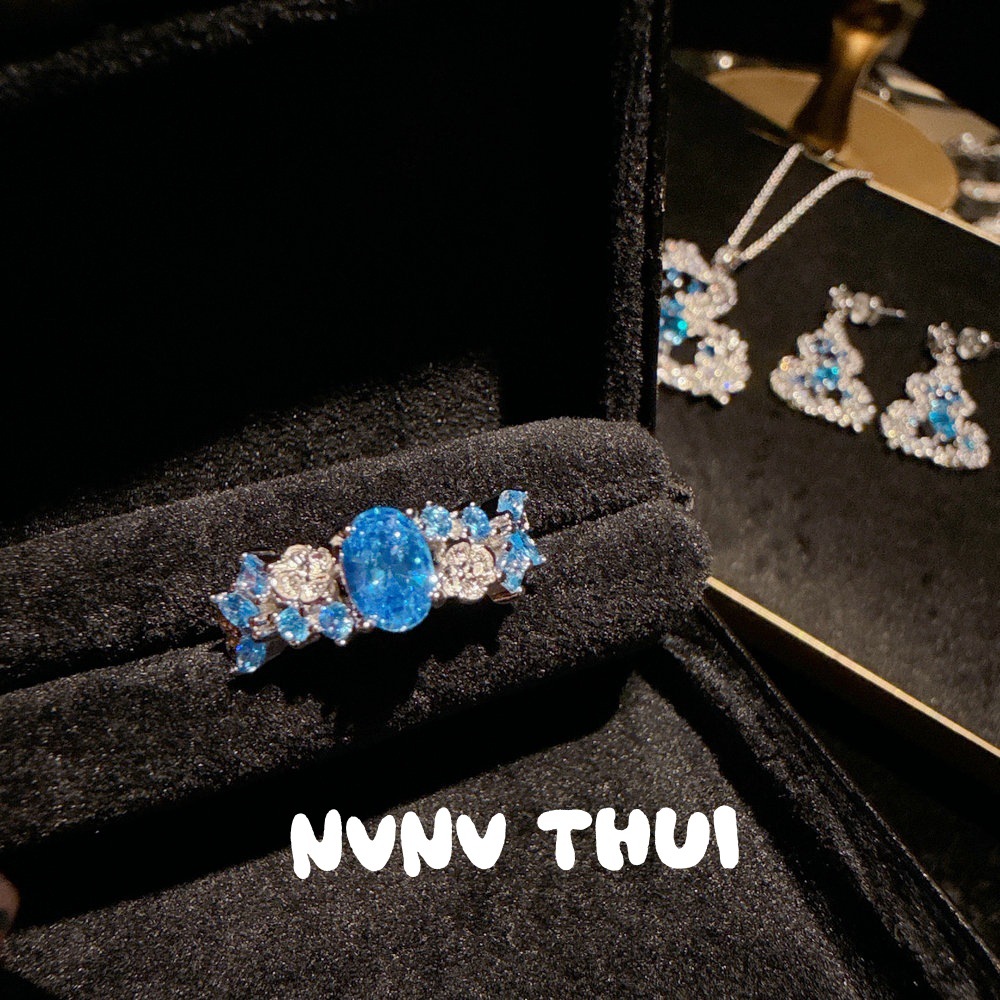2046hocc swiss blue small flower zircon open ring ~ no box