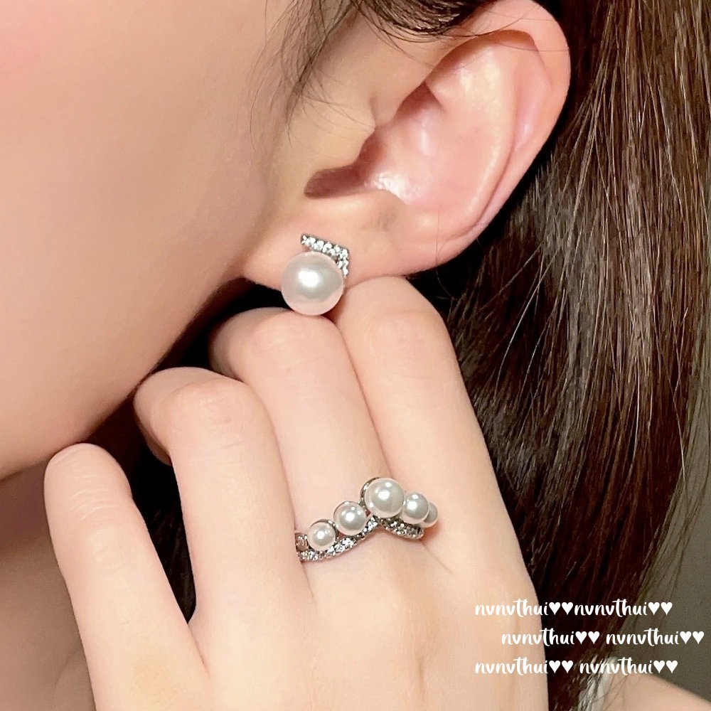 284y crown zircon artificial white shell pearl ear studs ~ no box