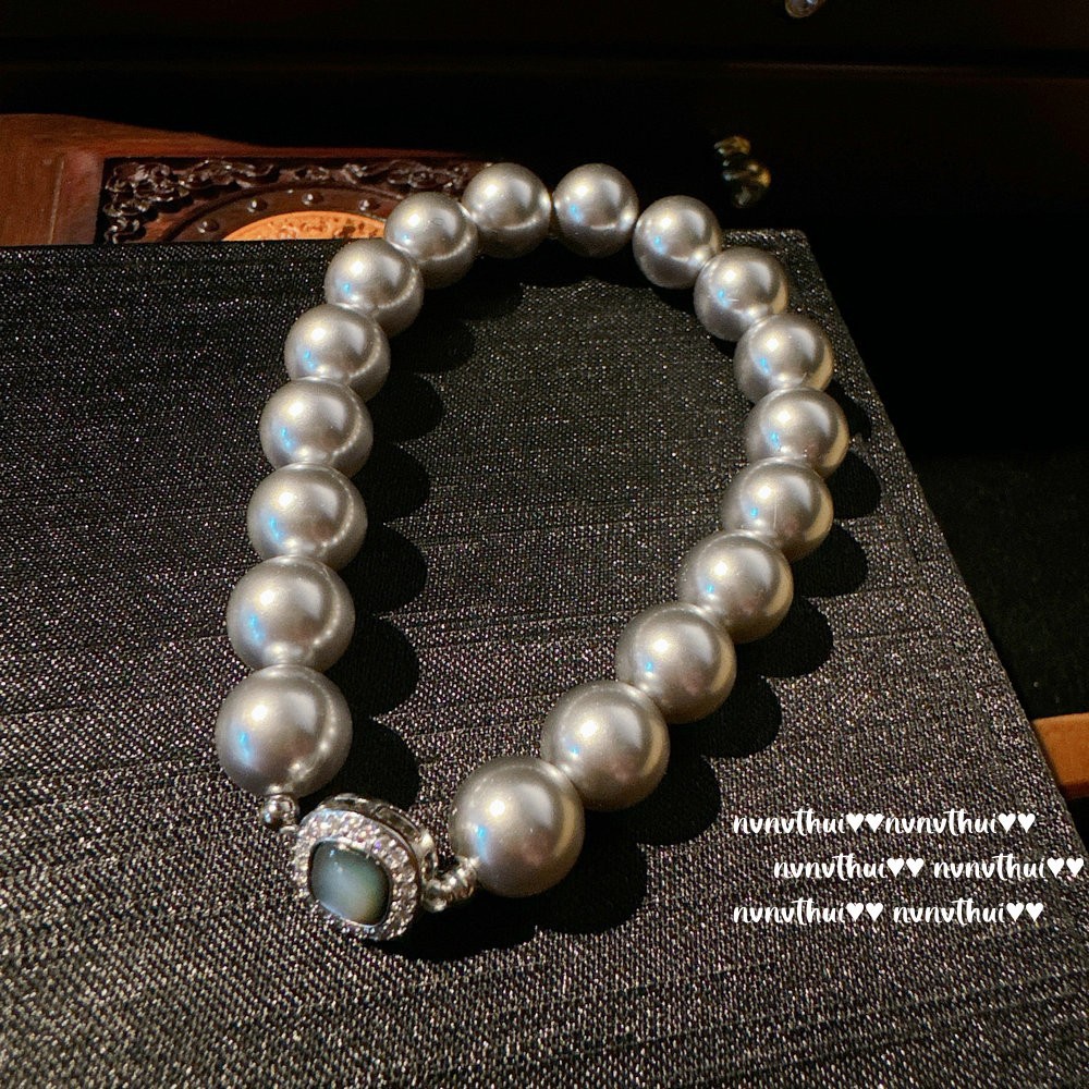 284nv artificial real heather gray shell pearls fritillary buckle bracelet ~ no box