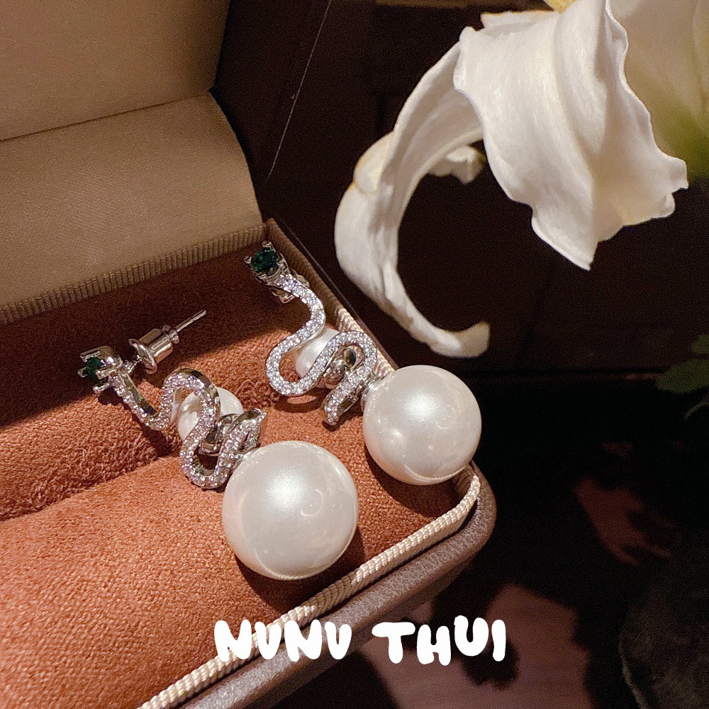 2044qip spirit snake zircon bead earrings ~ no box