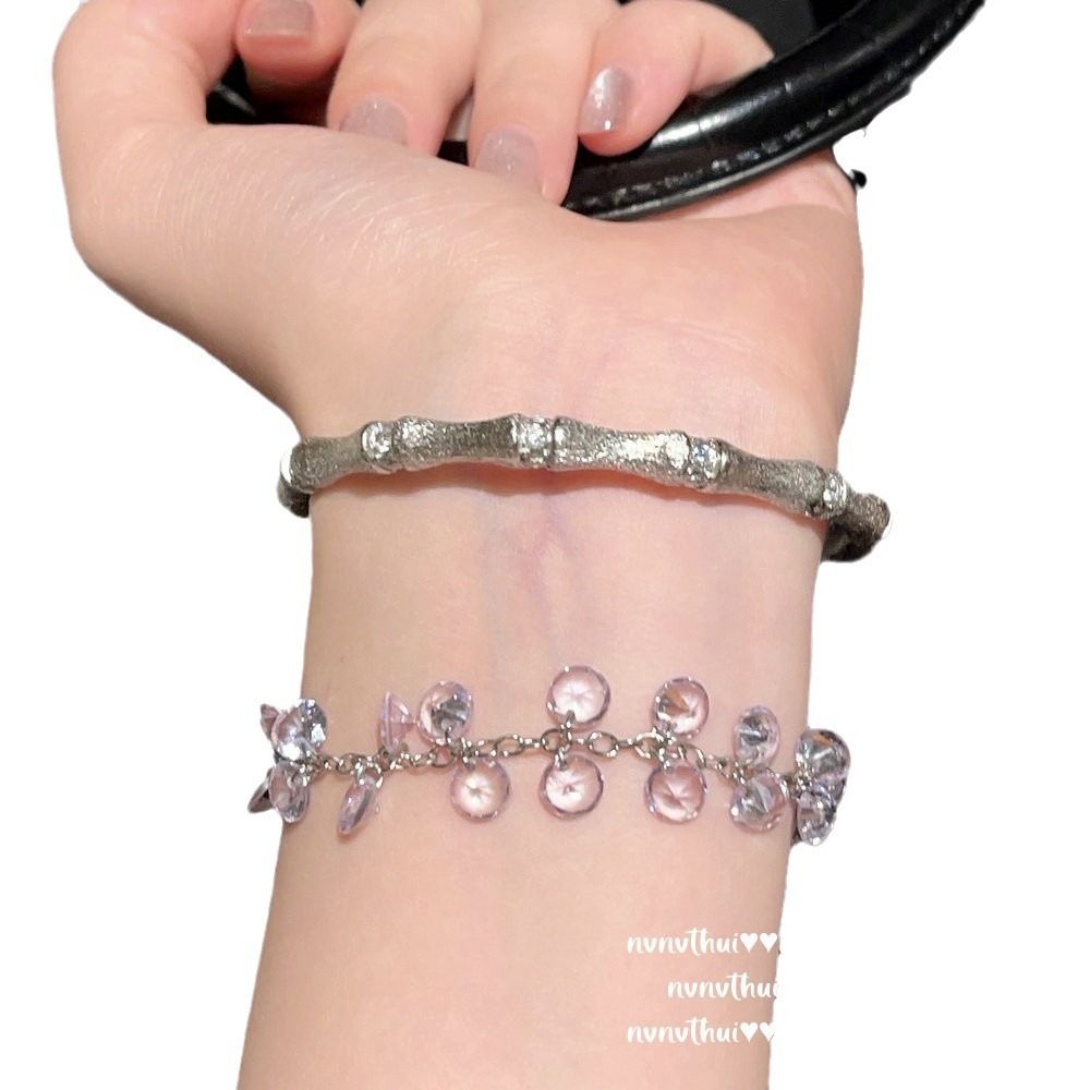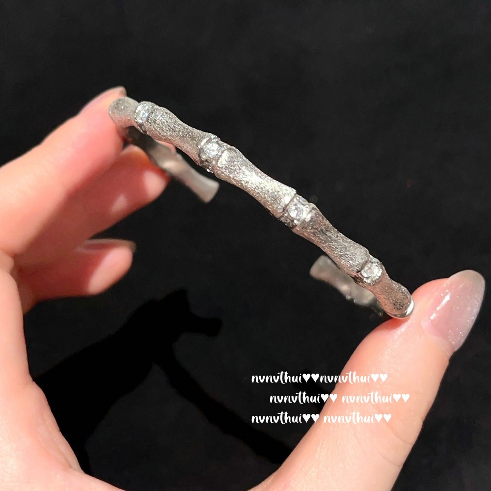 296z white gold plated brushed bamboo joint hao inlaid zircon open-ended bracelet ~ no box