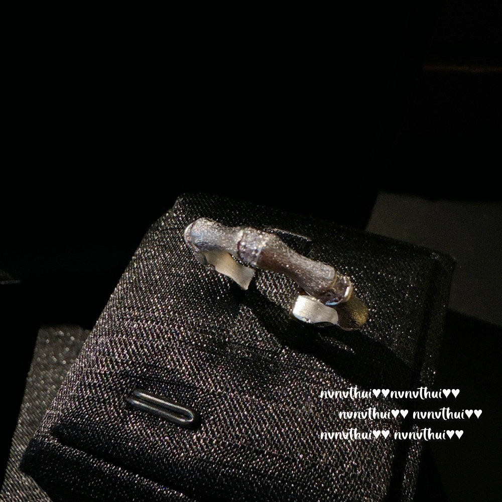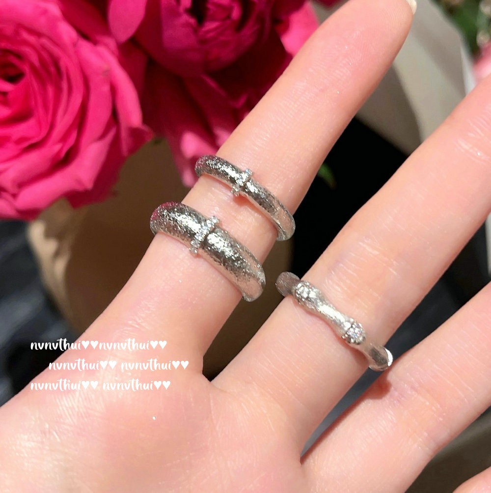 296z white gold plated brushed bamboo zircon open ring ~ no box