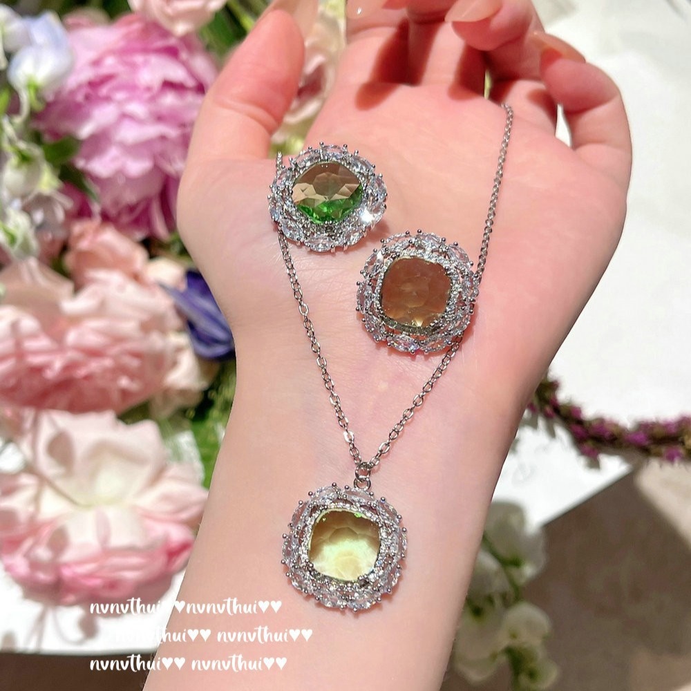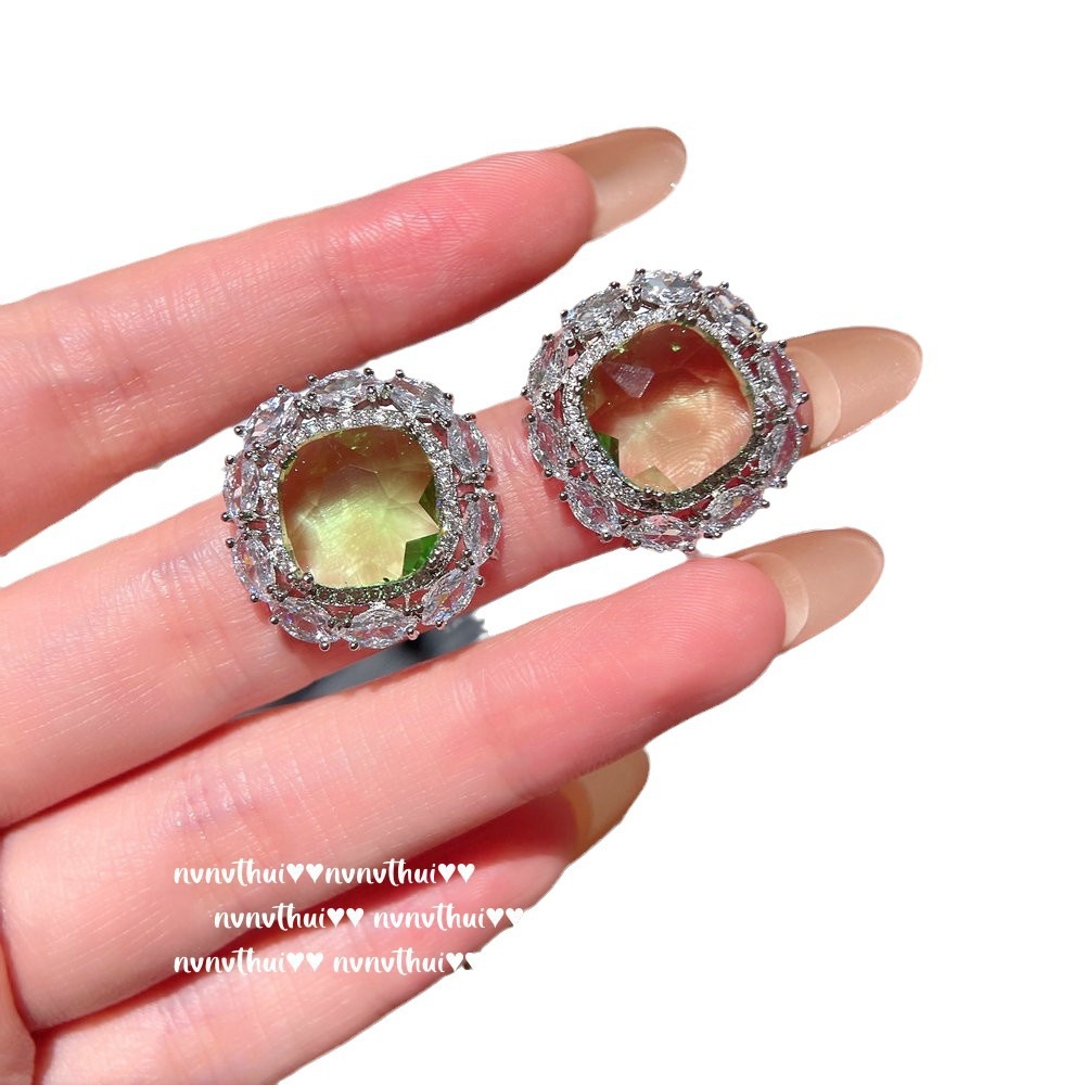 195p gradient peacock green irregular zircon two ways earrings ~ no box