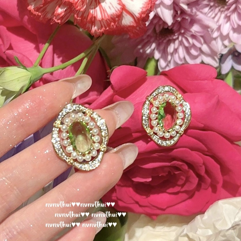 195ca fruit green gradient zircon earrings ~ no box