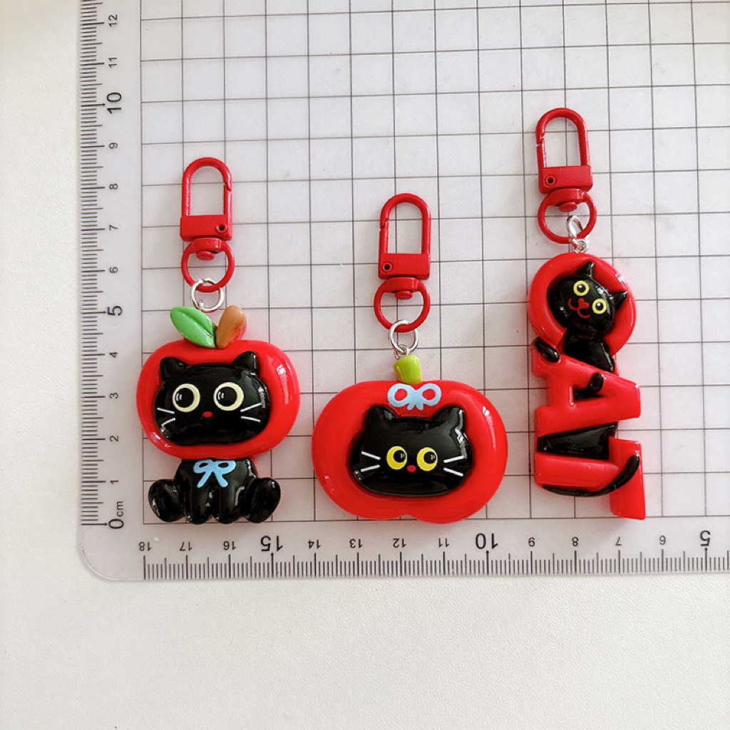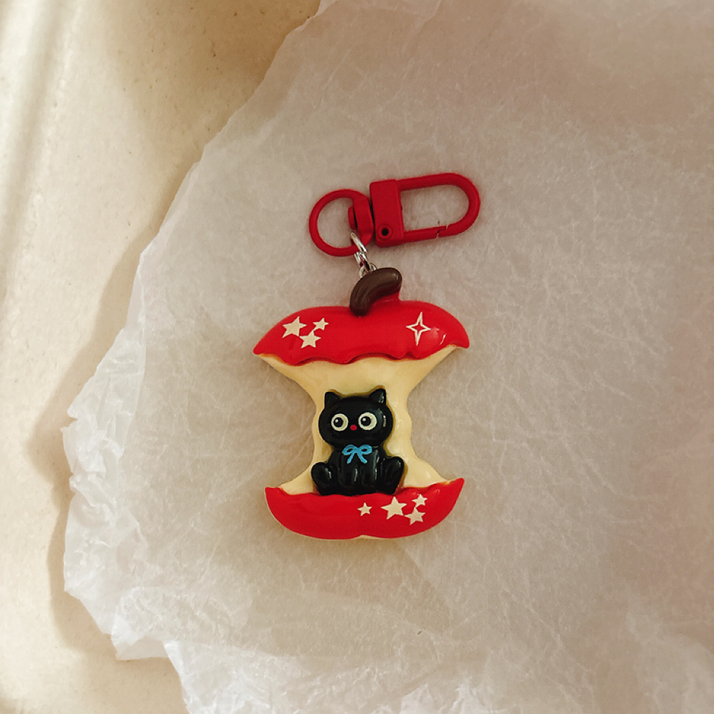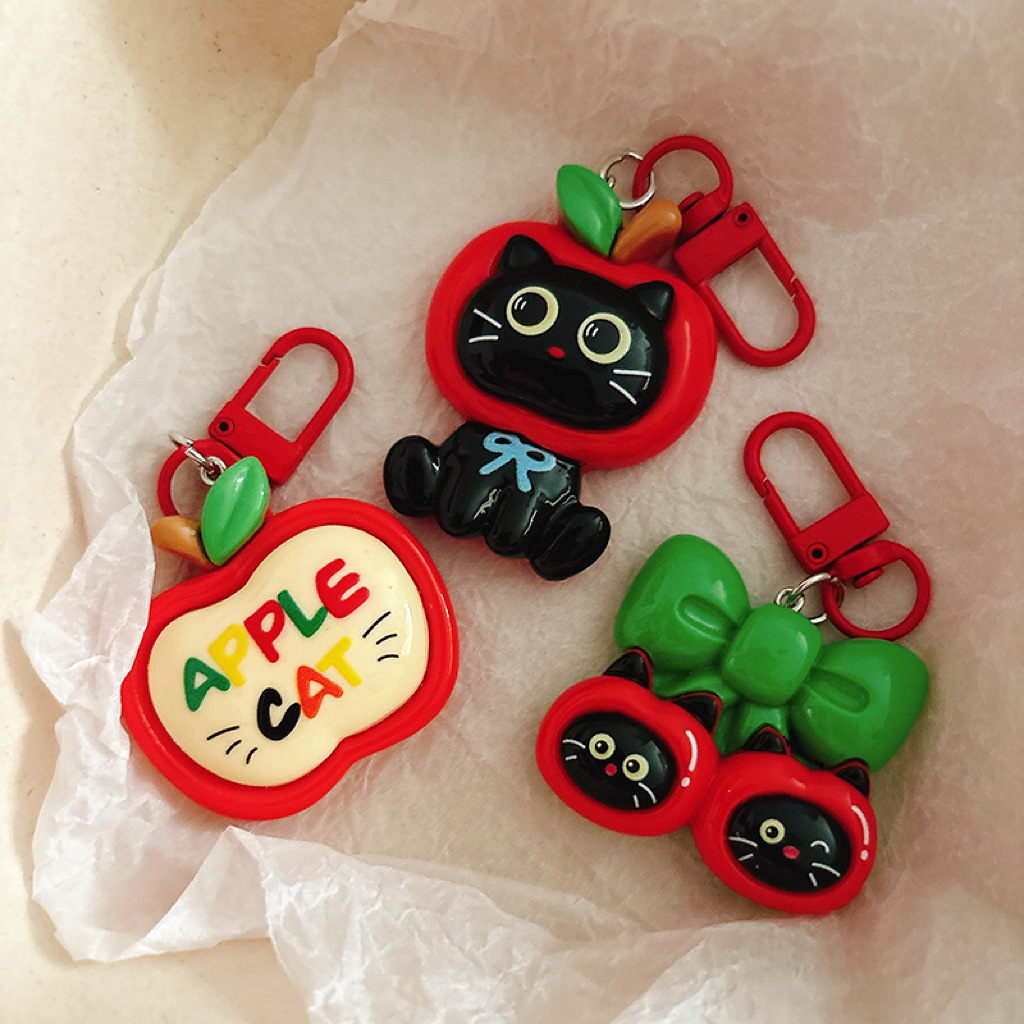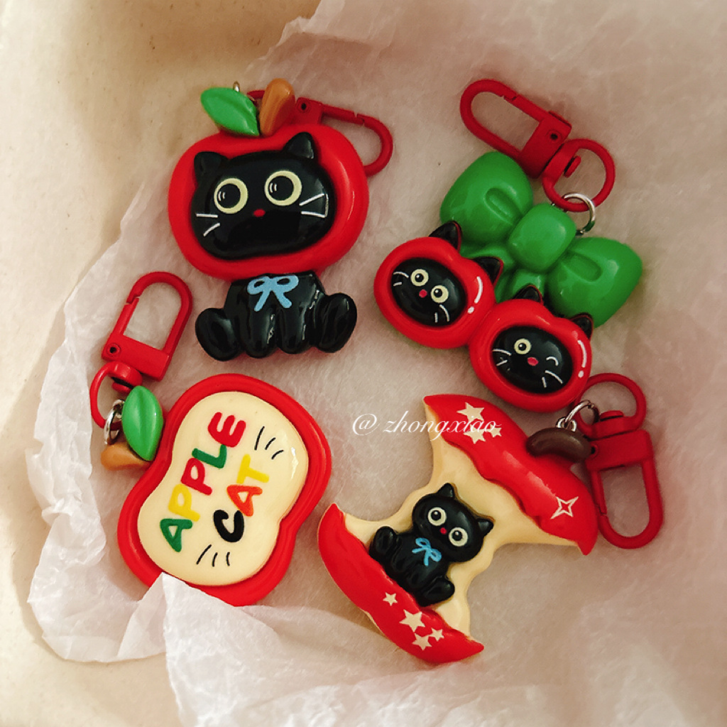 large apple black cat-cat word plate
