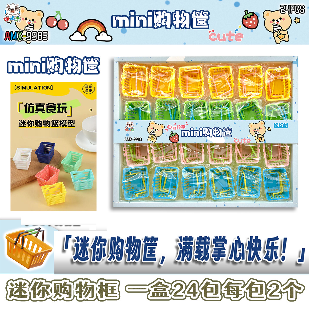 48 into mini shopping box toy basket miniature simulation supermarket scene children play house props small ornaments