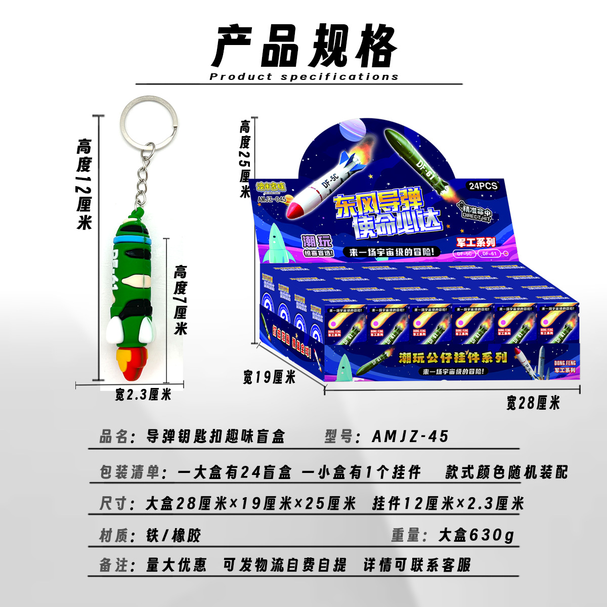 24 military missile pendant blind box dongfeng hanging piece pendant keychain student schoolbag backpack decorations small sale