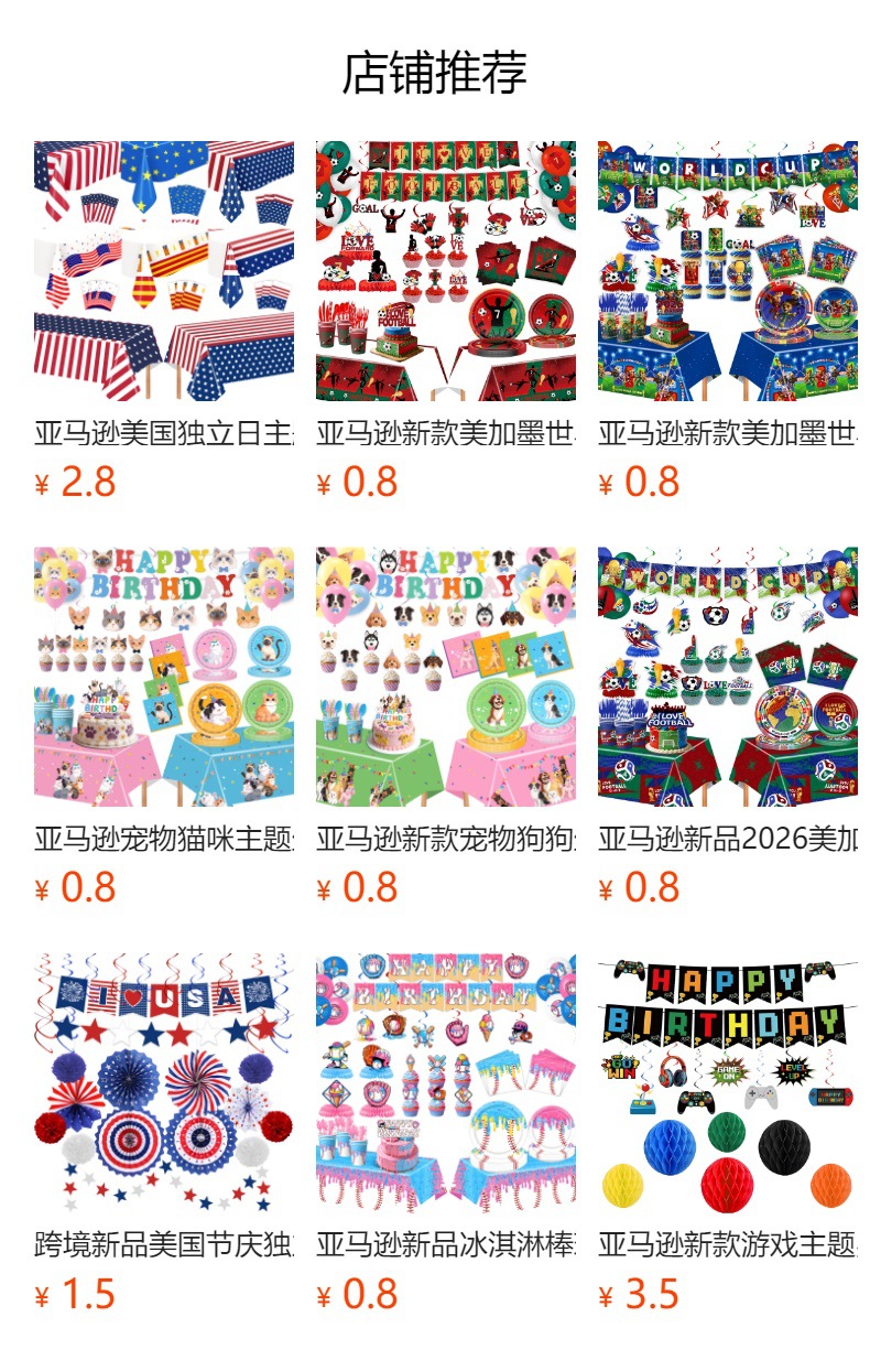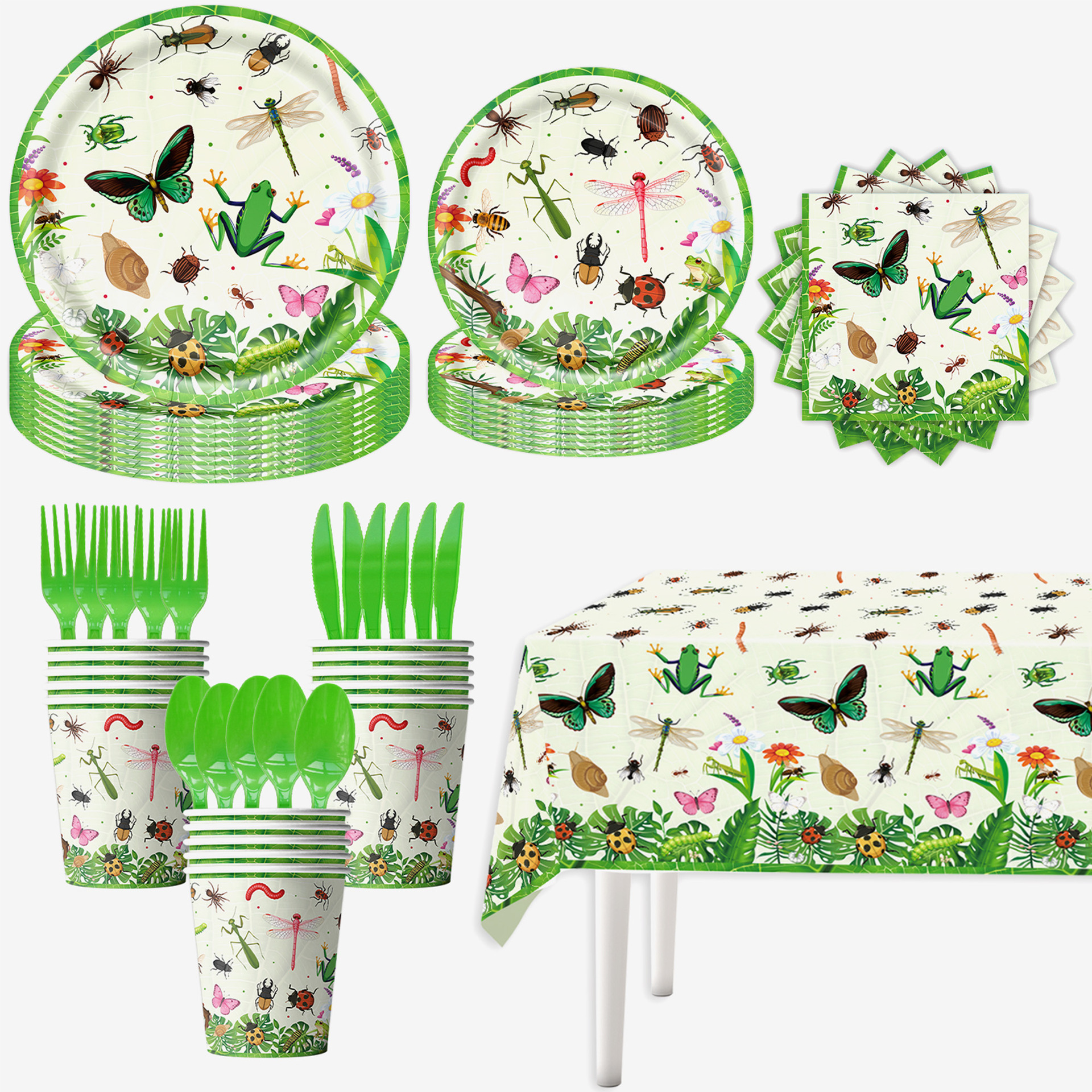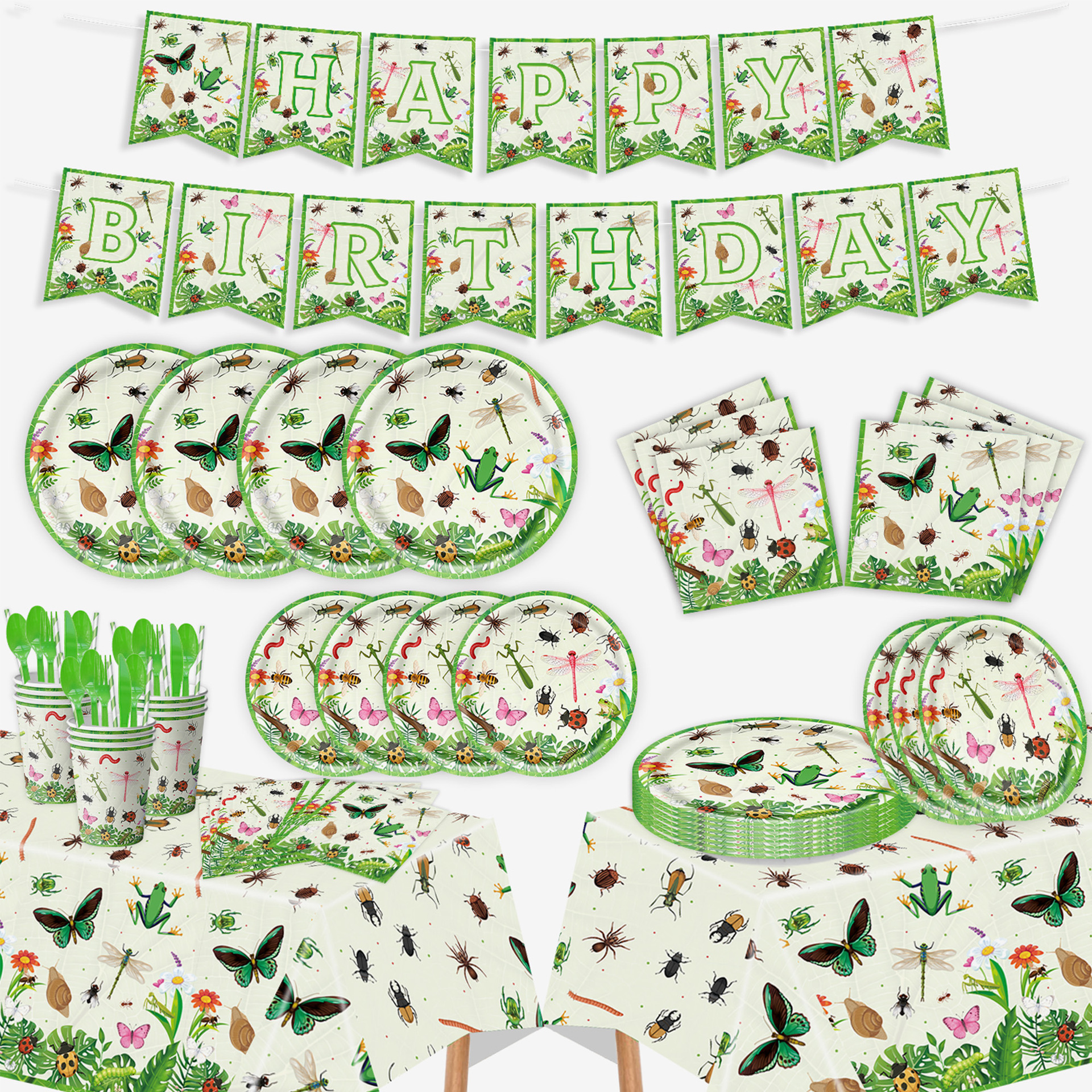 6-piece set 66pcs(7-inch 10+9-inch 10 + paper cup 10 + tissue 20 + hanging flag 15 + tablecloth 1)