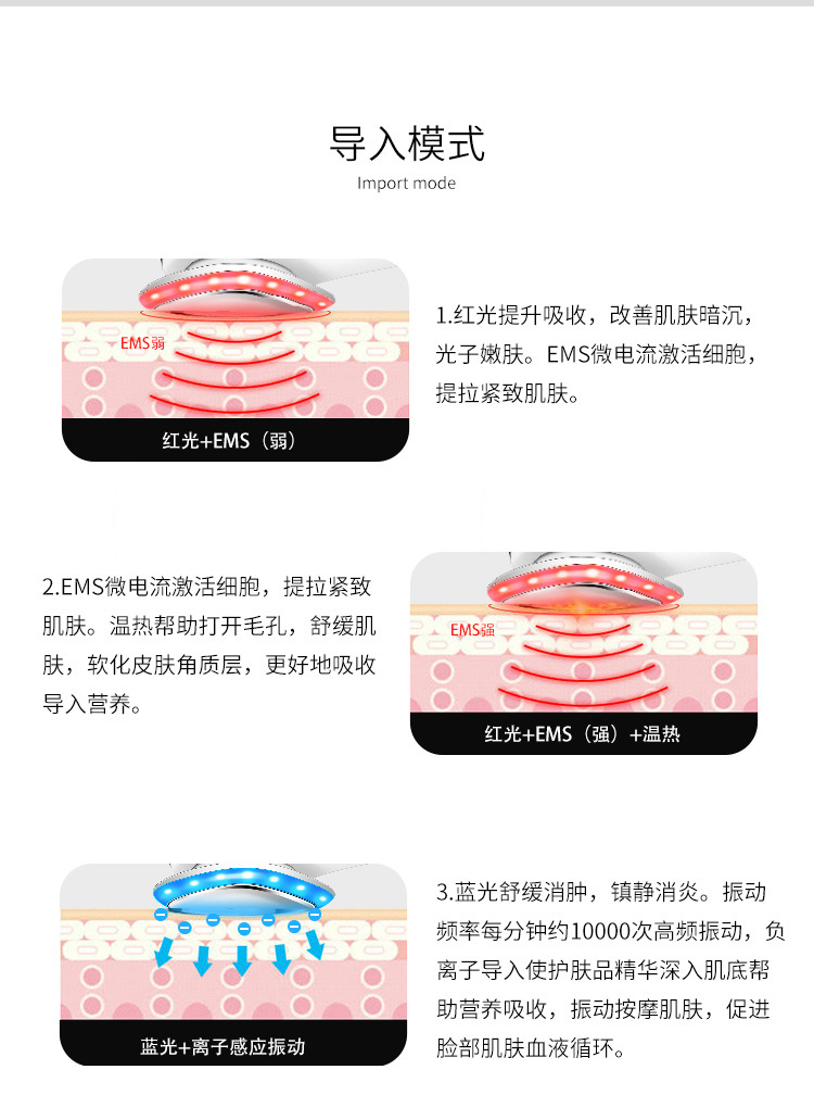 1. EMS micro-current activates cells, lifts and tightens the skin.