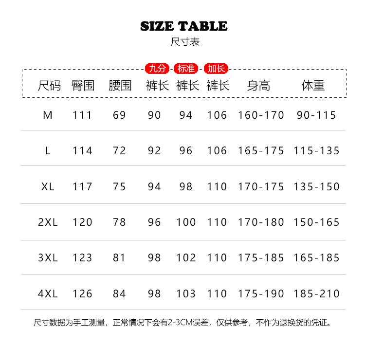 | 4xl(185-210) kg | CN¥ 91.73 |