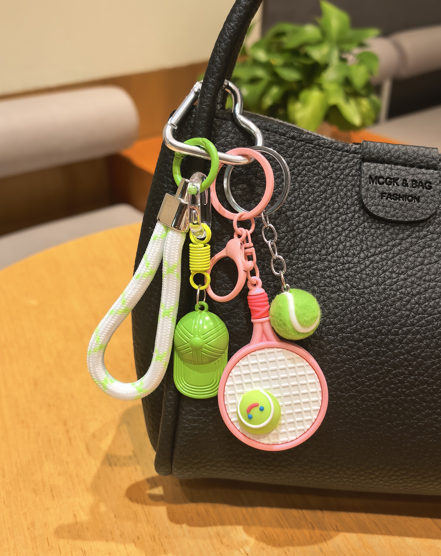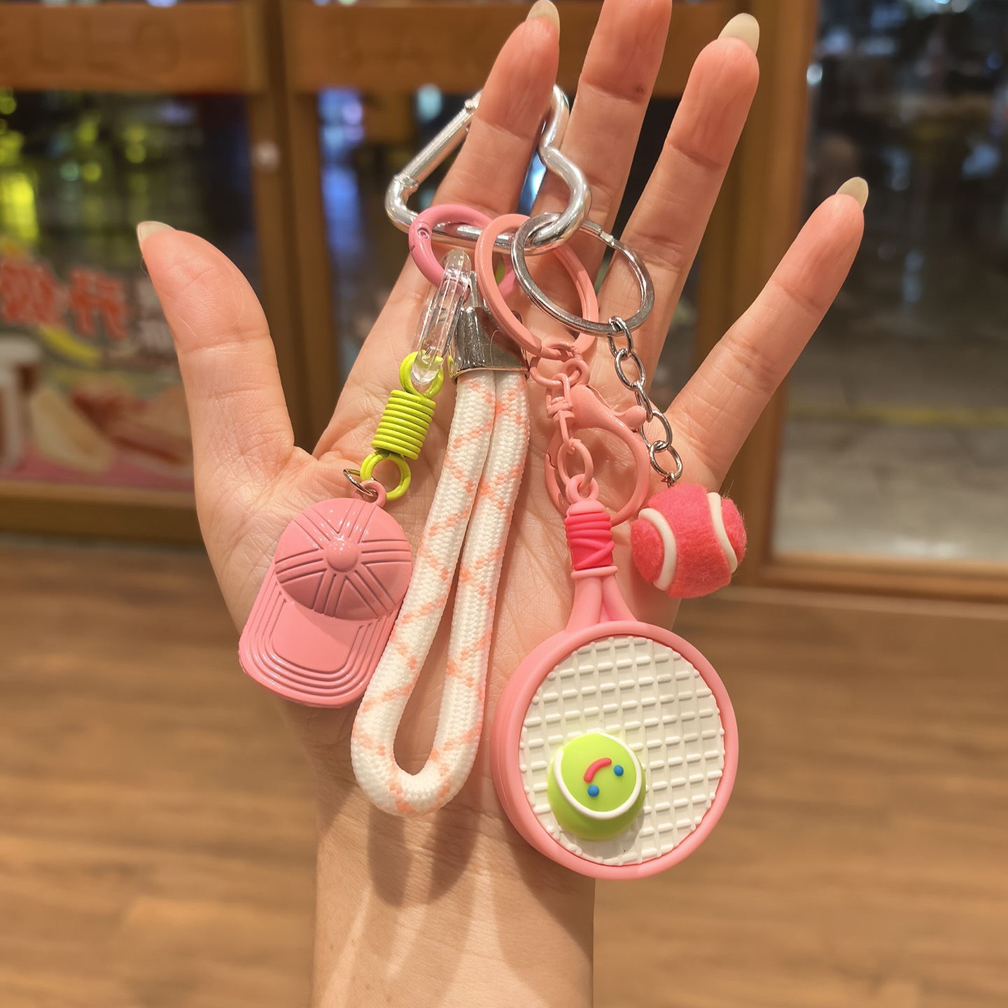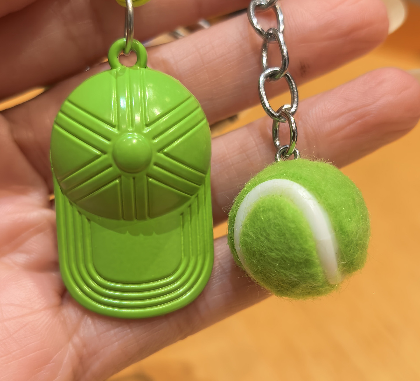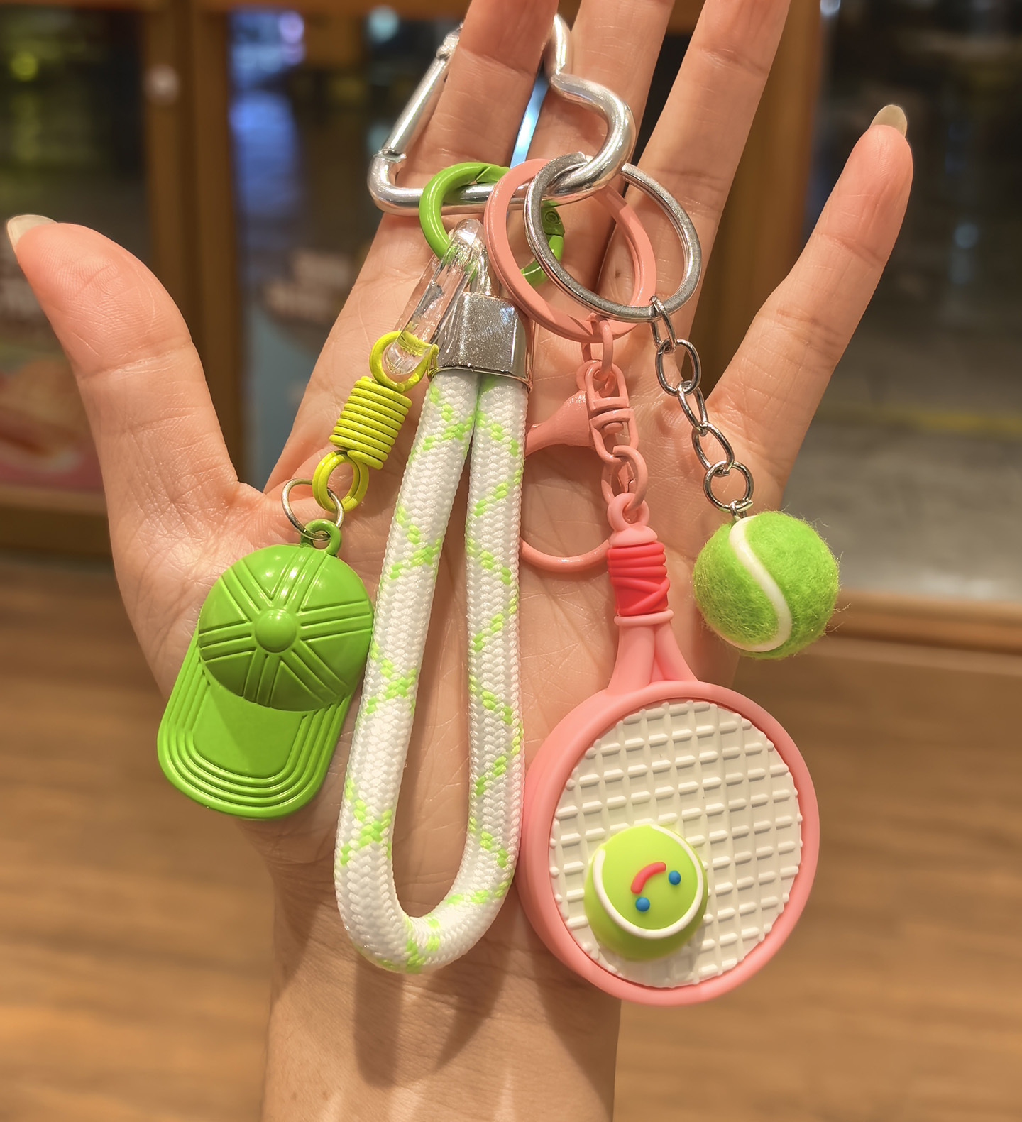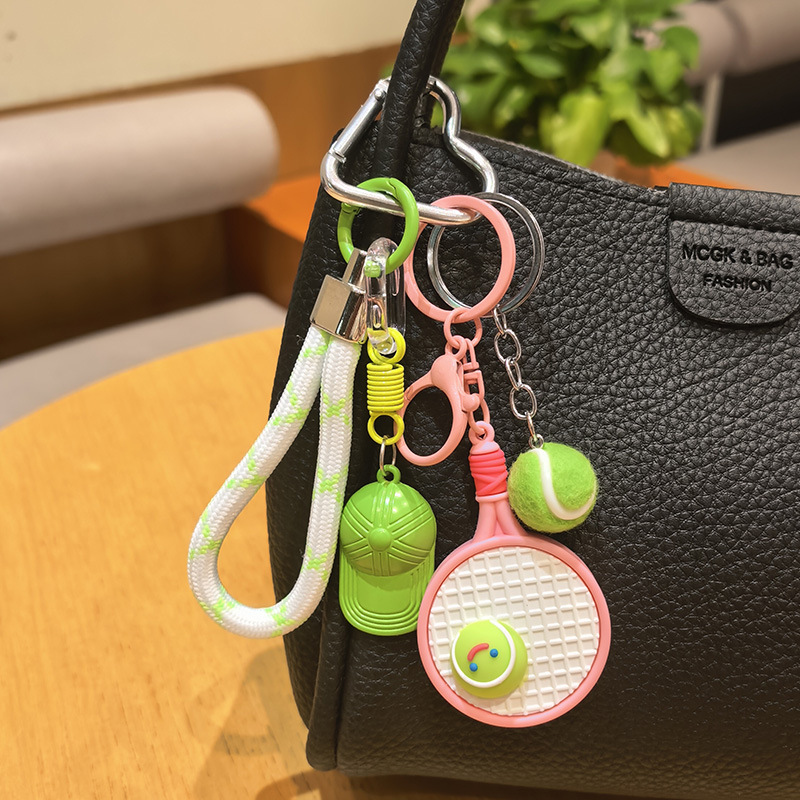 pink racket + green tennis + green cap [sports style tennis rackets keychain pendant