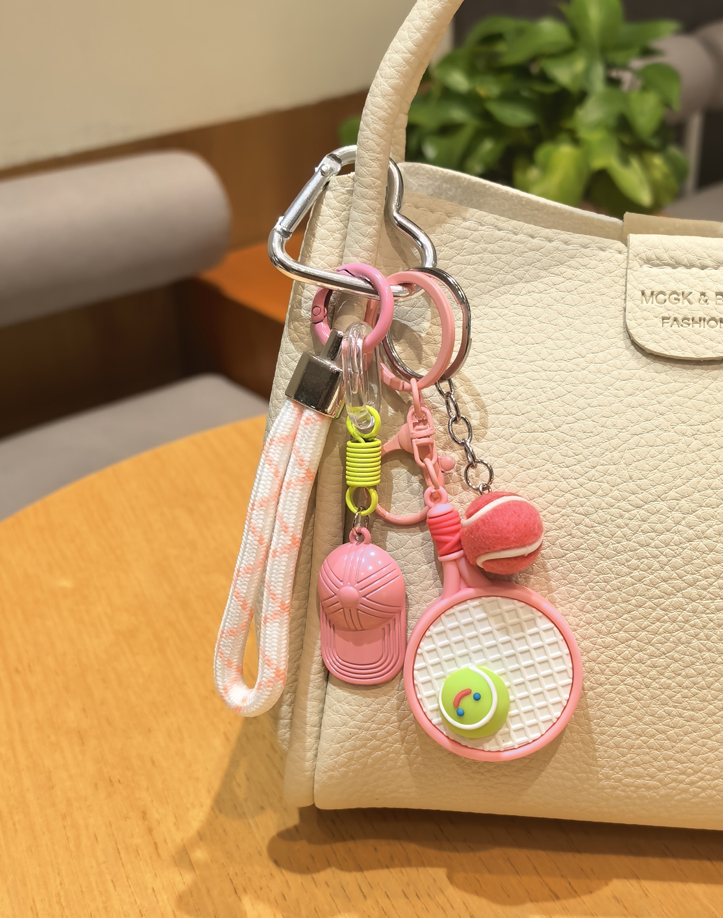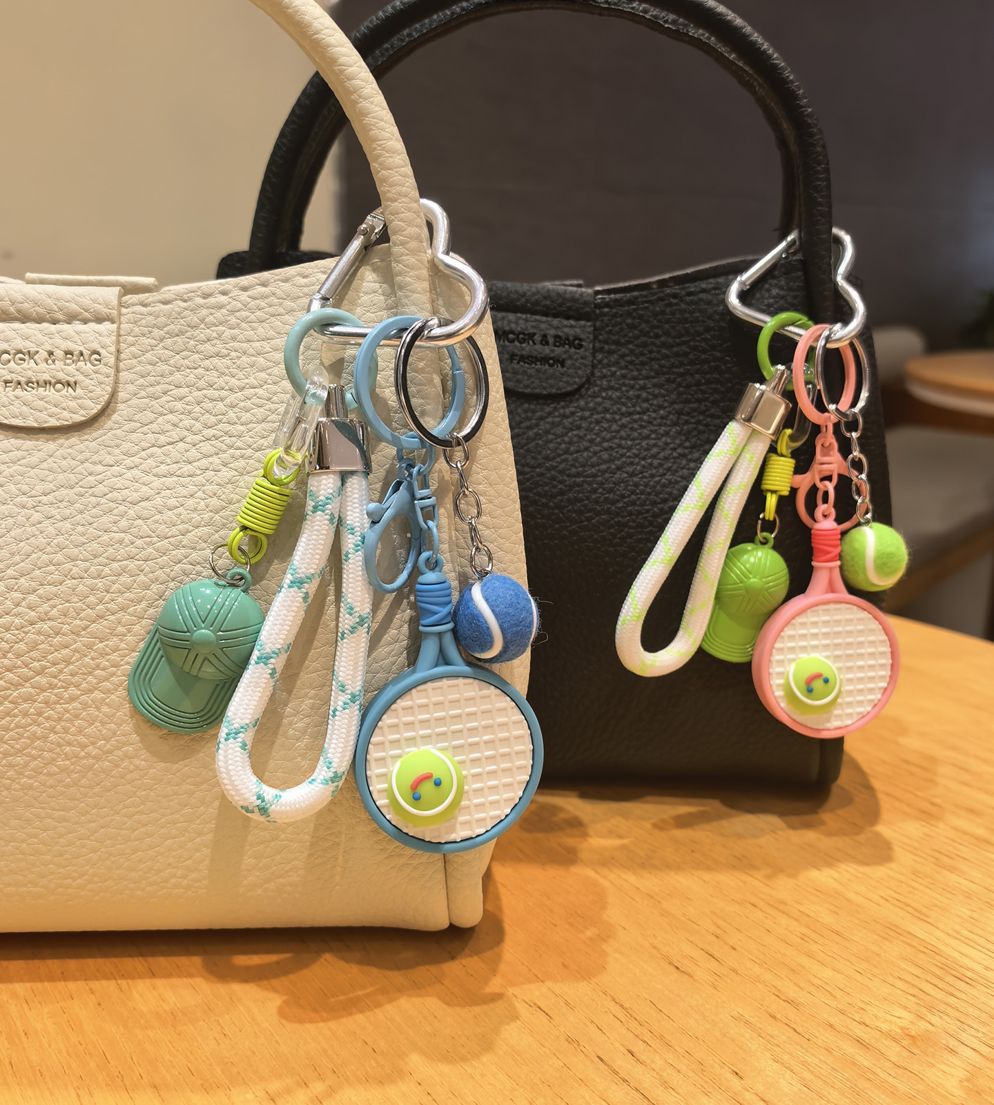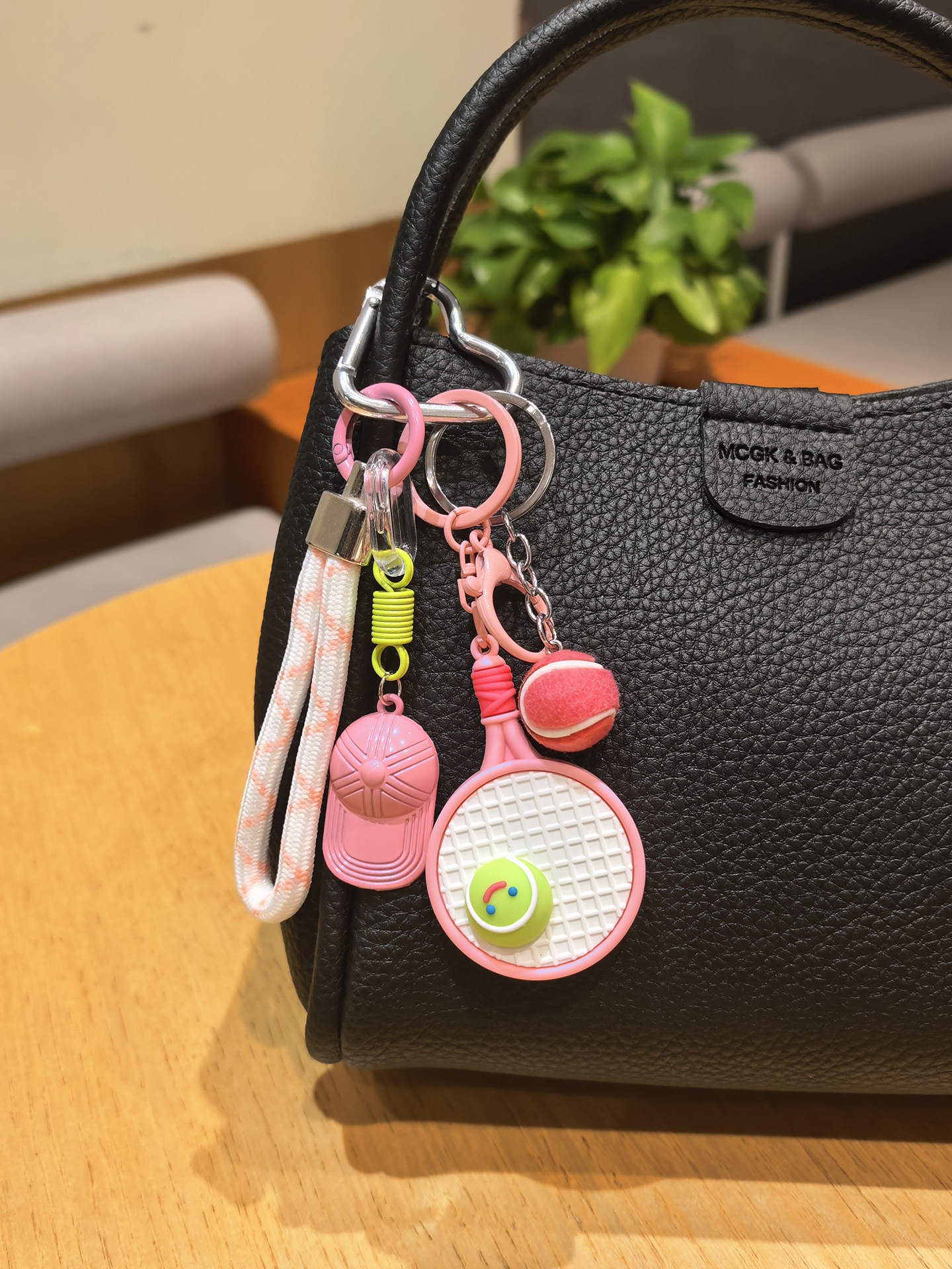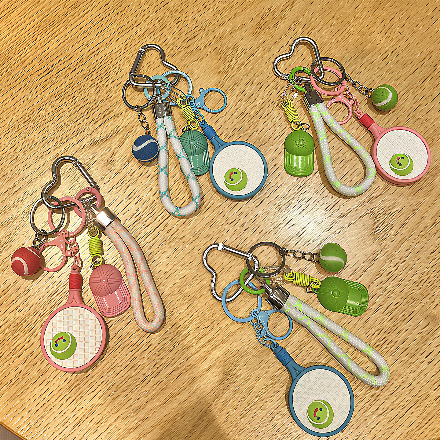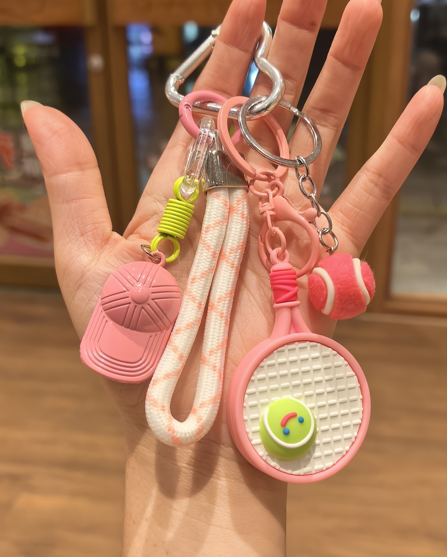 pink racket + green tennis + green cap [sports style tennis rackets keychain pendant